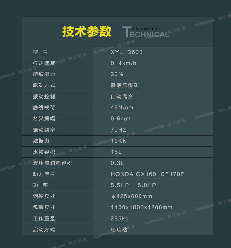 手扶單輪(汽油)壓路機(jī)進(jìn)口液壓系統(tǒng)手扶壓路機(jī)XYL-D600主要用于溝渠基礎(chǔ),道路,體育場(chǎng)地的壓實(shí)整平,也可用于壓實(shí)瀝青表面的作業(yè)。