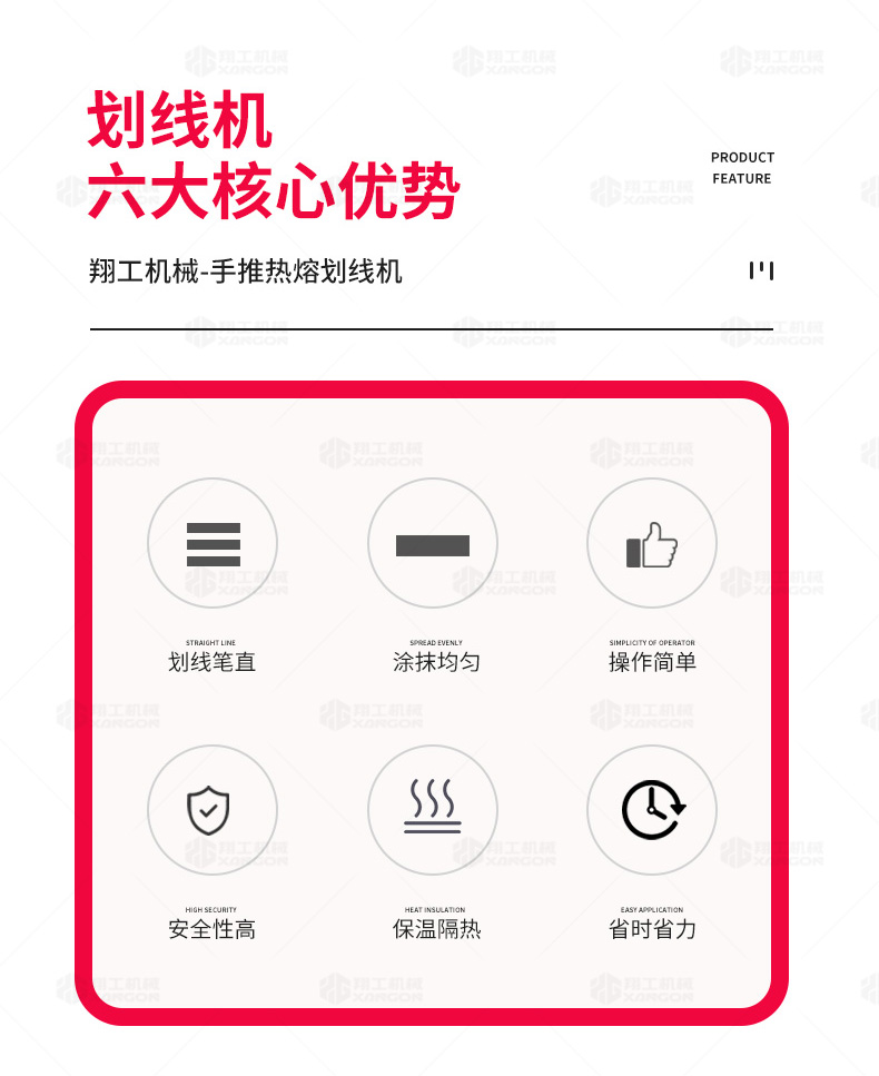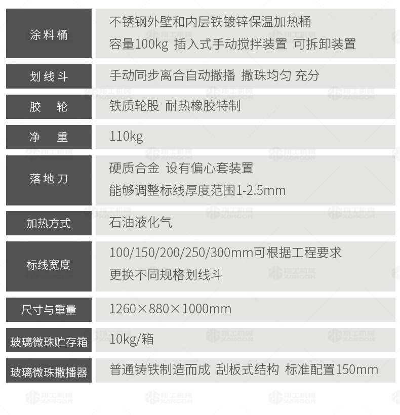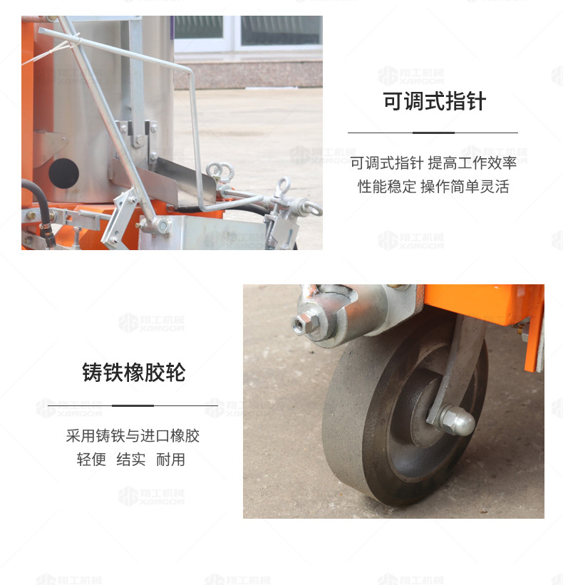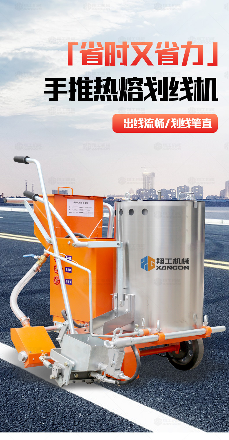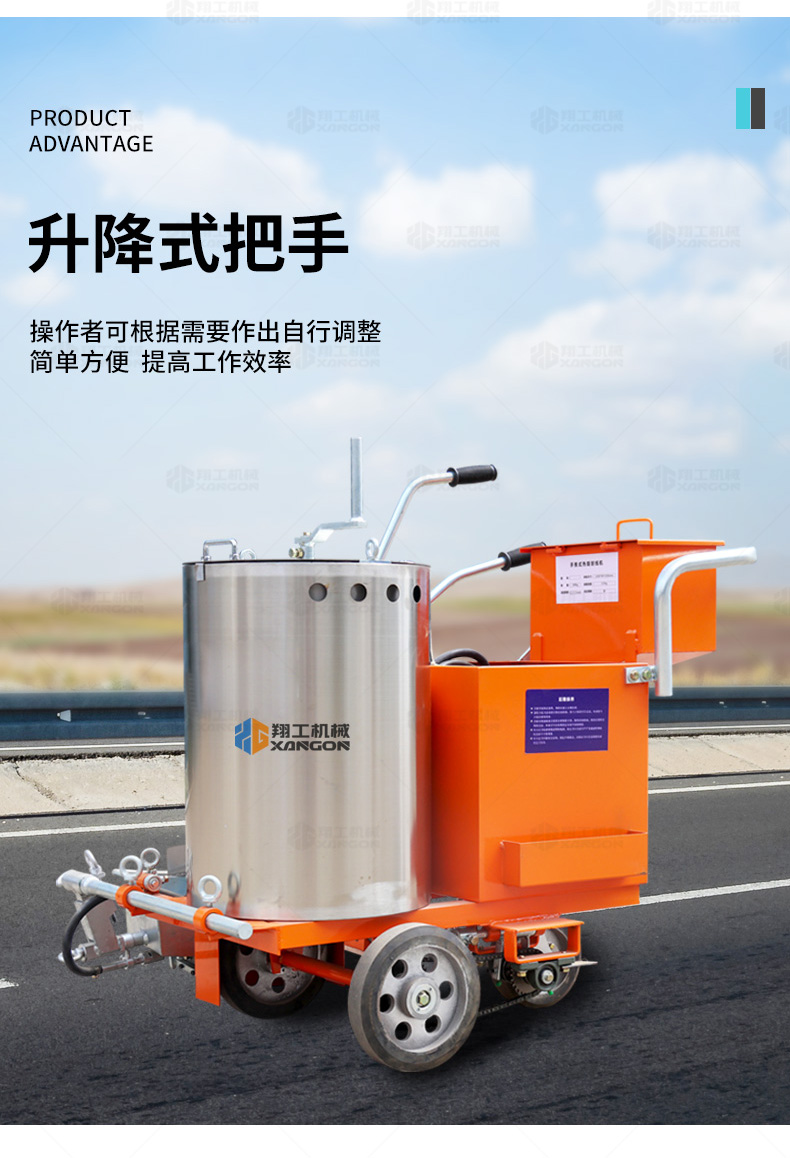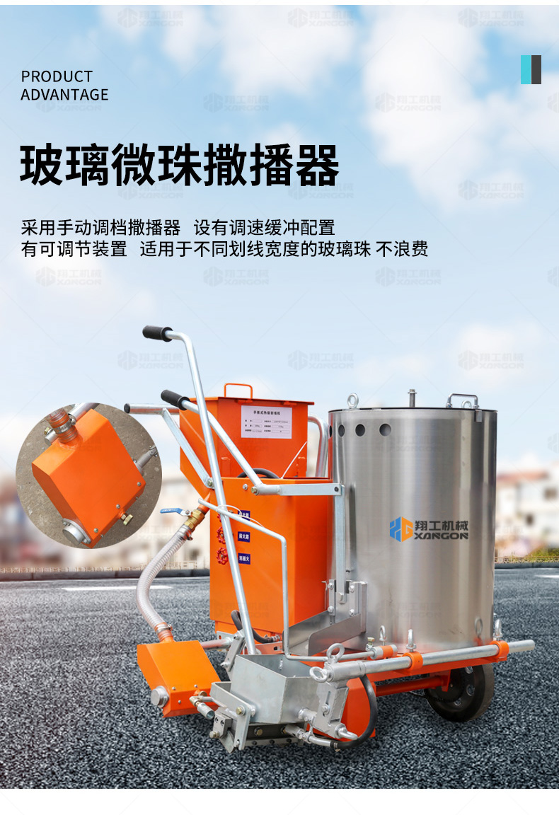160手推熱熔劃線機(jī)采用普通鑄鐵劃線斗,同步離合玻璃微珠自動撒播器,具有結(jié)構(gòu)簡單、輕便、價優(yōu)、性能優(yōu)良等特點(diǎn)。