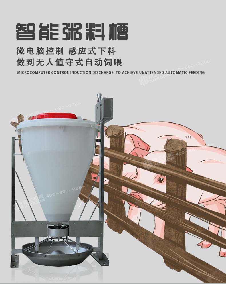 4.智能料槽,粥料器,采用微電腦控制,感應(yīng)式下料,做到無人值守式自動飼喂。核心控制部件采用模塊式,灌注膠全密封,防水防塵,經(jīng)久耐用,而且更換方便。