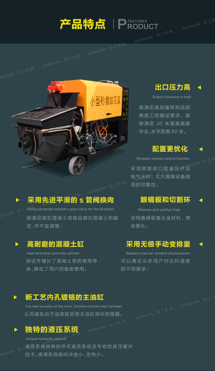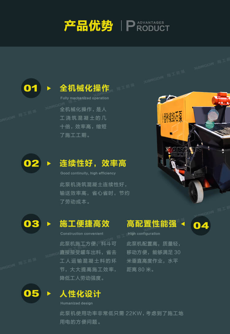 3.此泵機(jī)體積小,施工方便,操作簡單,可樓面直接澆注,大大降低了勞動(dòng)強(qiáng)度。