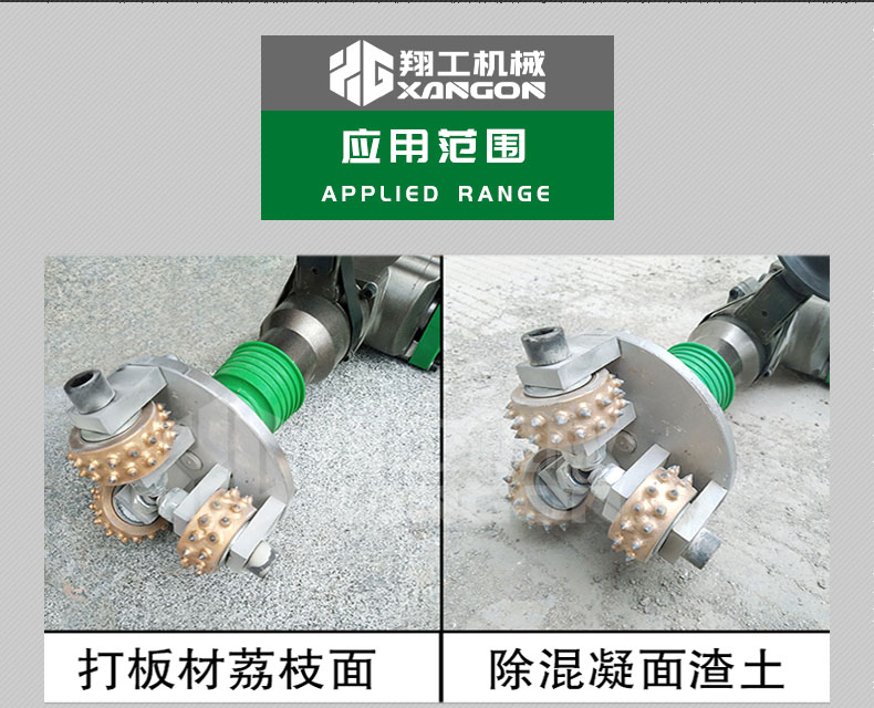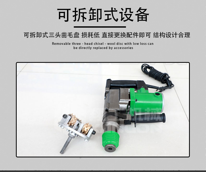 電動(dòng)手持式鑿毛機(jī) 金剛石三頭鑿毛設(shè)備 小型水泥路面拉毛機(jī)。該鑿毛機(jī)型主要應(yīng)用于高鐵、高速公路橋面、隧道、水利水電、核電、市政道橋、大型集裝箱場(chǎng)地、停車場(chǎng)、室內(nèi)外混凝土地面翻新除險(xiǎn)加固等混凝土面層鑿毛工程