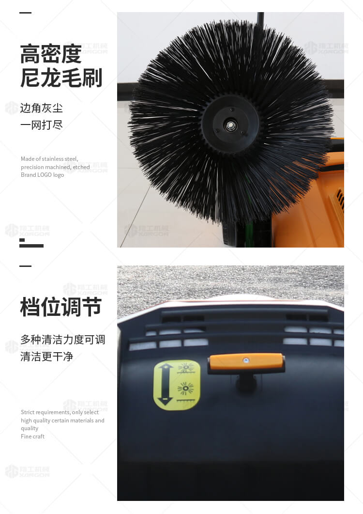 手推式掃地機(jī)能清潔房屋周邊范圍:包括小路,公路,車道和院子,能比用普通的掃把和簸箕節(jié)省5倍的時間,清掃時垃圾被迅速的收集到塵箱,簡單、快速、干凈。