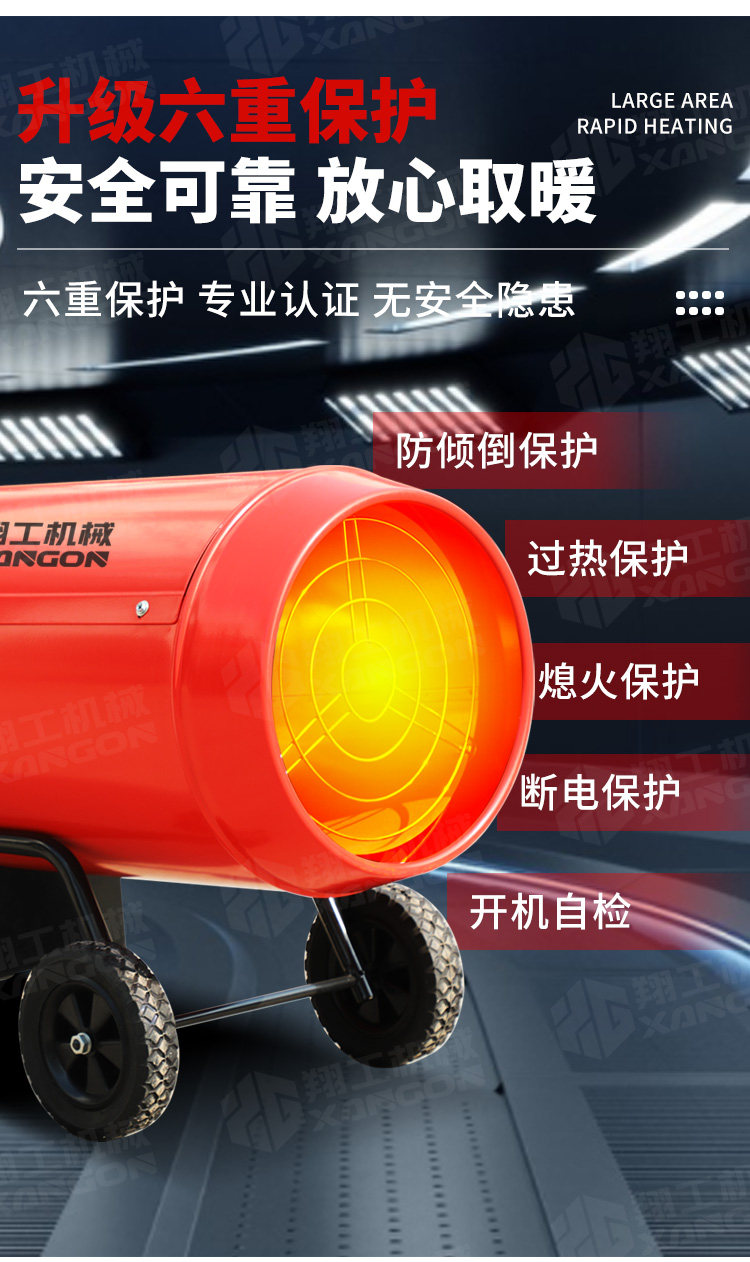 此款燃氣暖風機適用于工廠車間、辦公室、酒店、酒吧、飯店、餐廳、大廳、展廳、咖啡店.天井、花園、步行街、站亭、運動館、步行街、大型會議室、別墅庭院及戶外休閑等空氣流通好的場所。