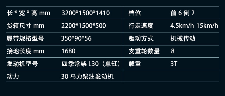 履帶運(yùn)輸車是專門提供復(fù)雜路況運(yùn)輸工作的機(jī)器,適用于普通運(yùn)輸車輛無法或者不適合通行的地方。履帶運(yùn)輸車以履帶代替了輪式行走,降低了對(duì)地面的損傷,同時(shí)履帶行走裝置降低了機(jī)器與地面的單位面積壓力,適用于山林、田地、沼澤、沙地、草地、雪地以及土質(zhì)松軟或氣候條件不太發(fā)的接近角和離地角。