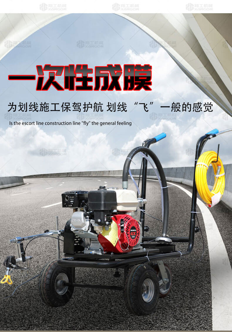 冷噴劃線機(jī)是常溫標(biāo)線施工的專用設(shè)備。主要適用于公路、市區(qū)停車場(chǎng)、機(jī)場(chǎng)等涂劃直線、虛線、曲線、斑馬線、文字、箭頭、圖形標(biāo)志等。形成高壓進(jìn)行噴涂,流量大、壓力穩(wěn)。所劃標(biāo)線線型清晰、附著力強(qiáng)、厚薄均勻、邊齊角齊。具有操作靈活、工作效率高、施工快捷方便、應(yīng)用范圍廣等特點(diǎn)。