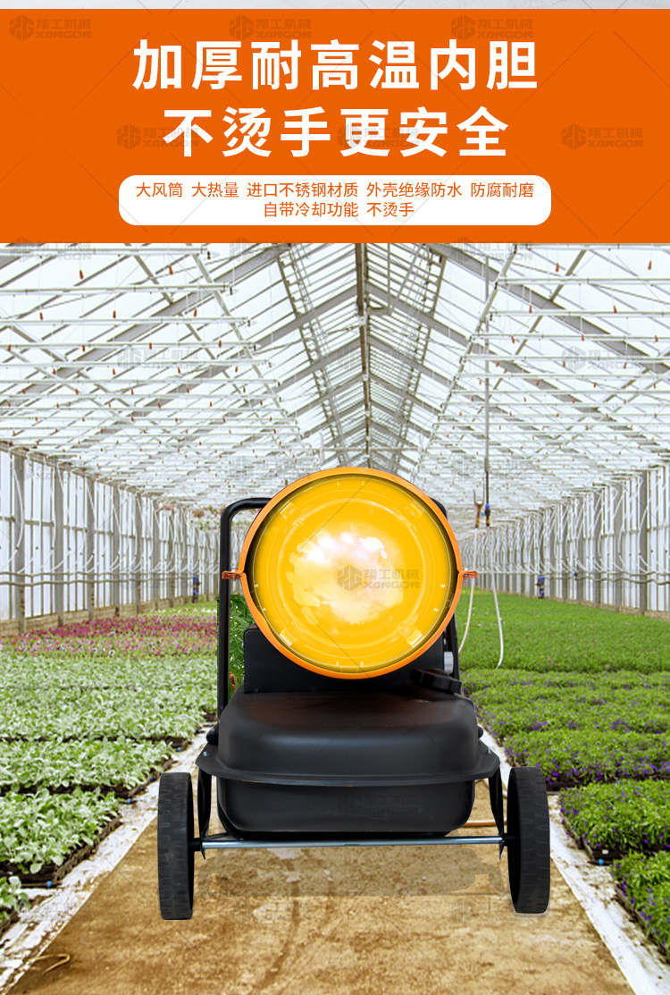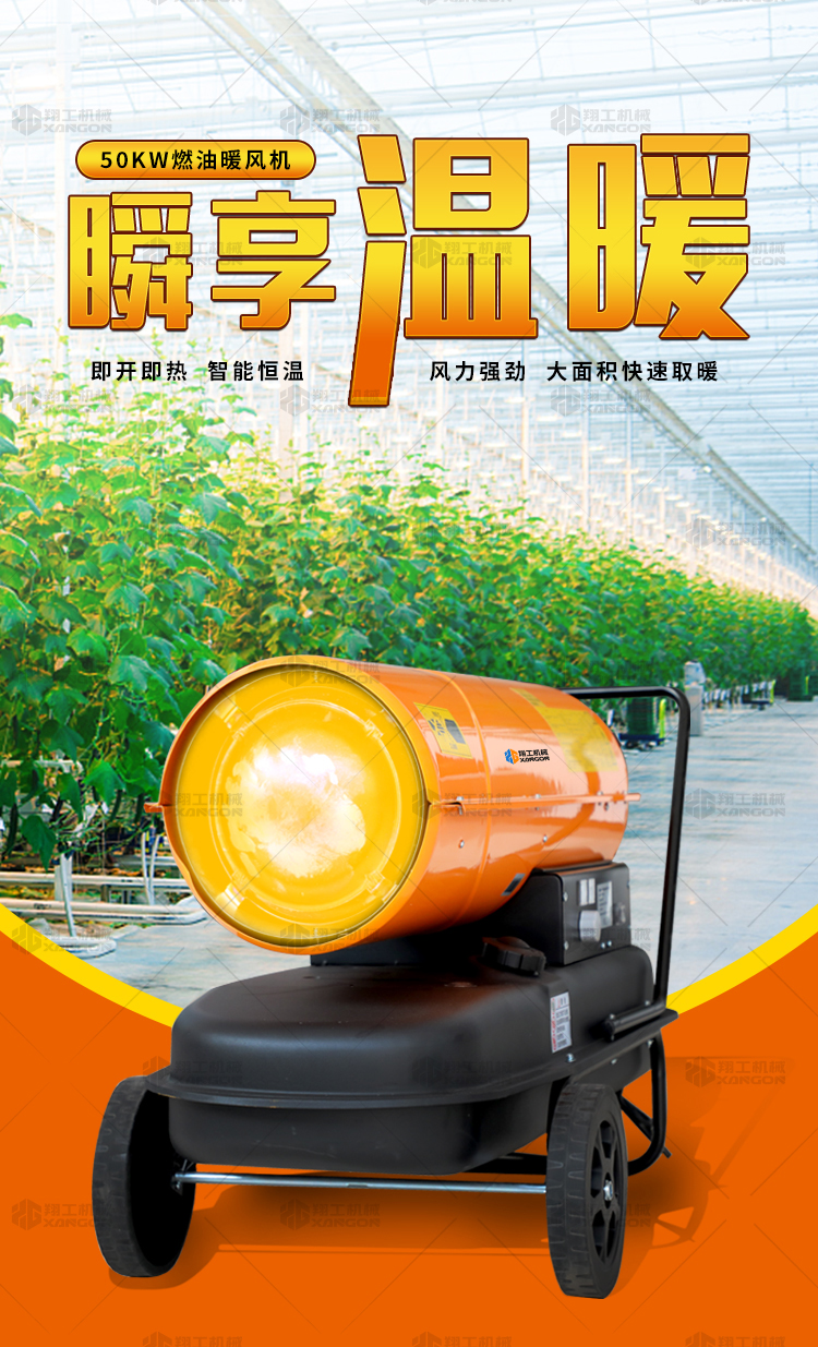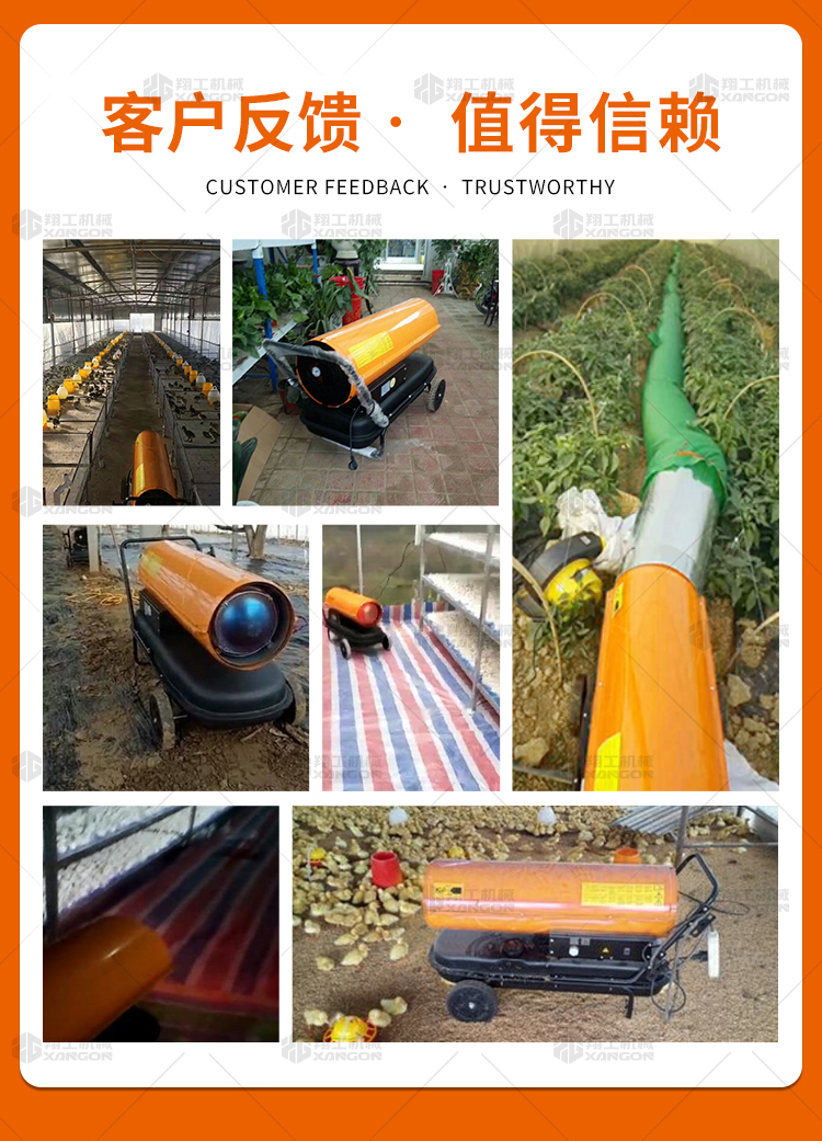 燃油暖風(fēng)機(jī)可對(duì)禽畜取暖,育雛取暖,花卉養(yǎng)殖,大棚蔬菜瓜 果,商場(chǎng),車間,展會(huì)進(jìn)行取暖。