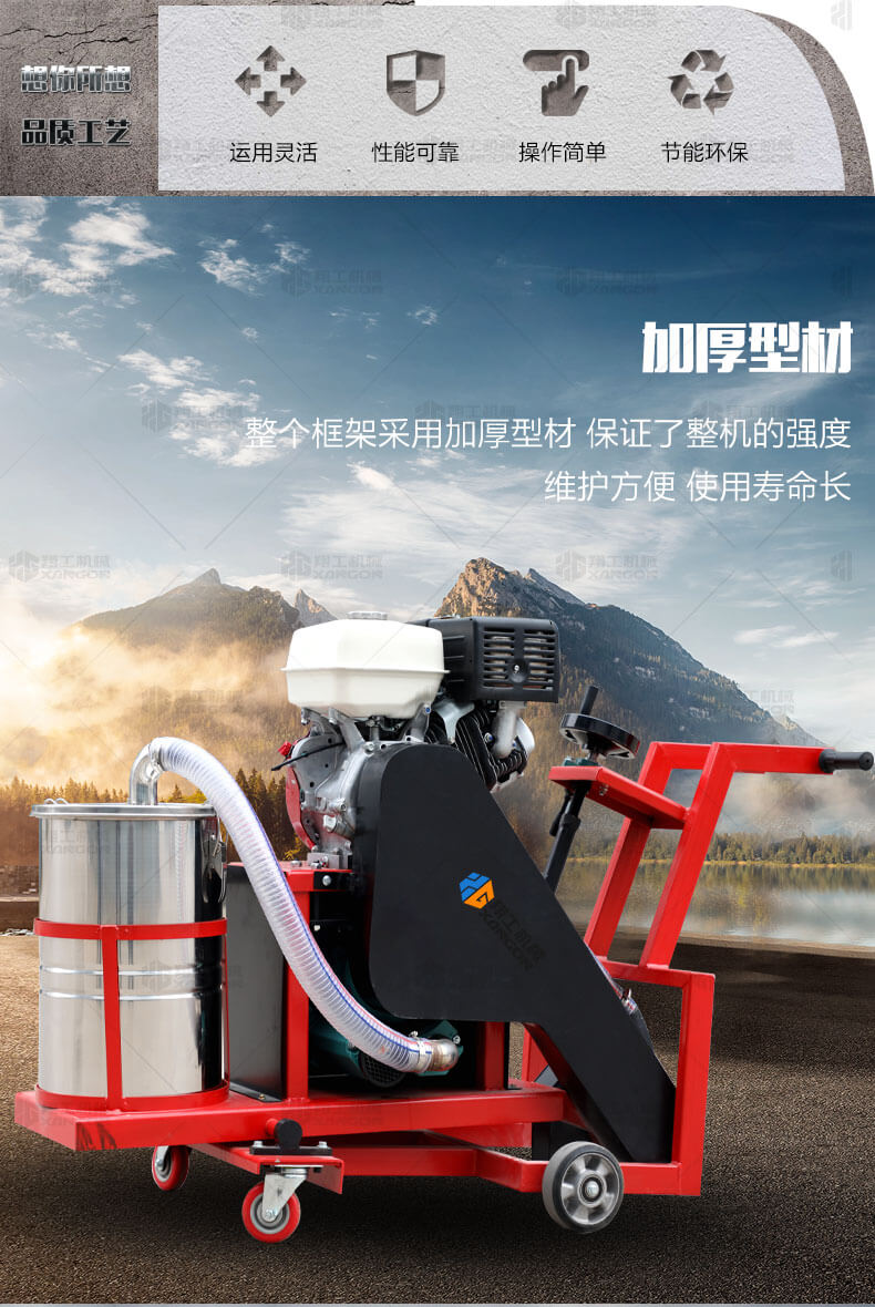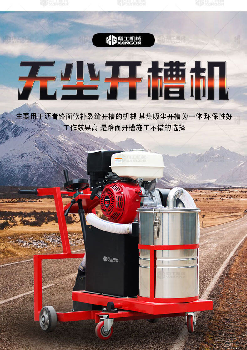 路面無塵開槽機(jī)是主要用于瀝青路面修補(bǔ)裂縫開槽的機(jī)械,其集吸塵、開槽為一體,環(huán)保性好,工作效果高,是路面開槽施工不錯的選擇。