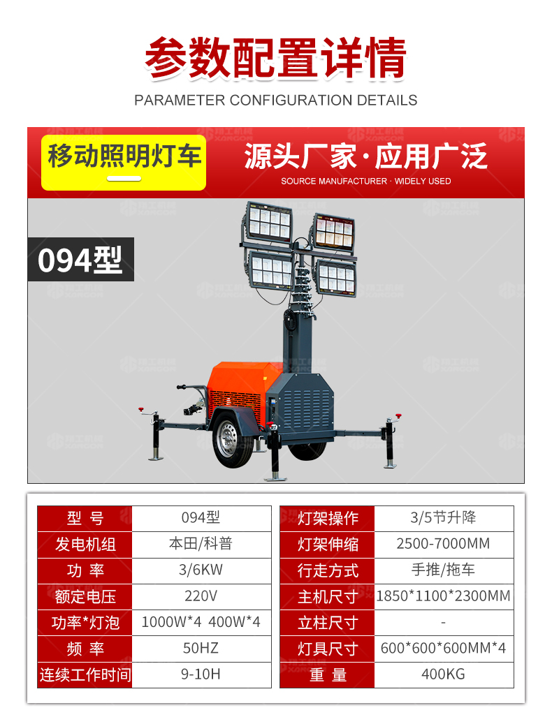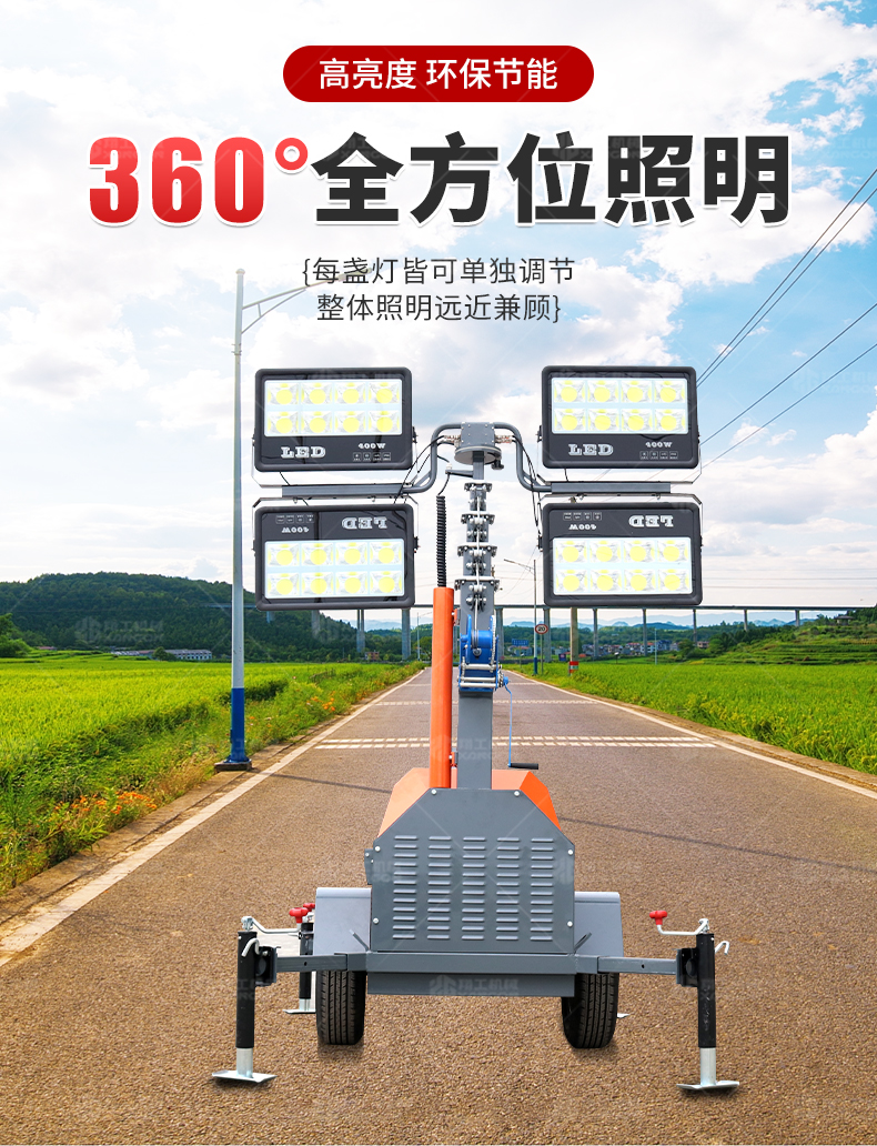 094移動(dòng)照明燈車(chē)采用高亮度LED光源,照明強(qiáng)度高、范圍廣,適用于夜間施工、搶險(xiǎn)救援等作業(yè)場(chǎng)景。配備液壓升降系統(tǒng),可自由調(diào)節(jié)燈架高度,實(shí)現(xiàn)360°全方位照明。移動(dòng)靈活,支持拖掛或自行走模式,適應(yīng)復(fù)雜地形。內(nèi)置大容量電池組,并可選配發(fā)電機(jī)供電,續(xù)航持久,是高效可靠的移動(dòng)照明解決方案。