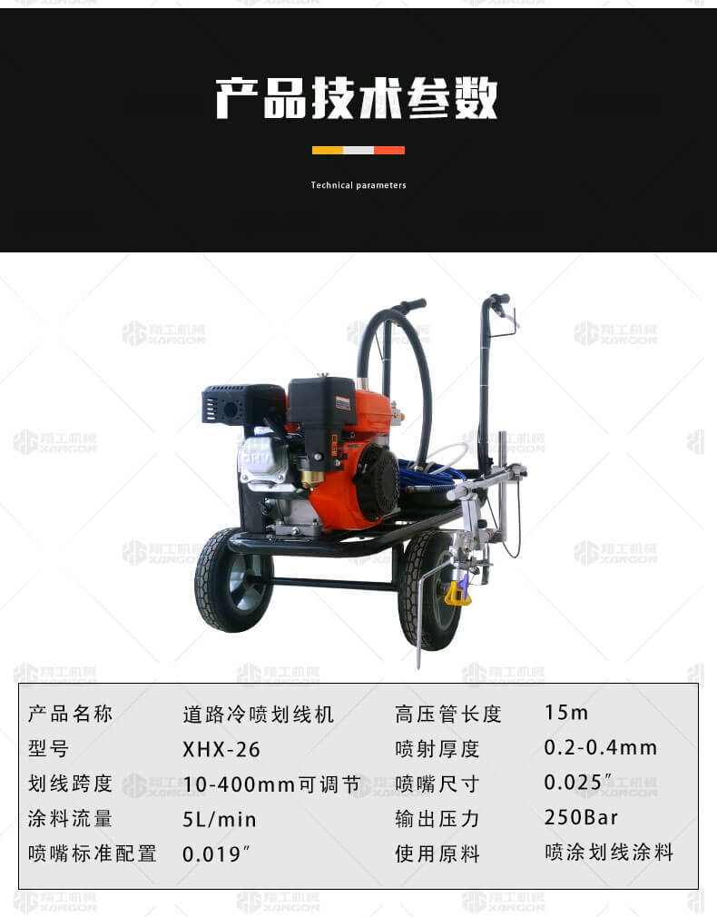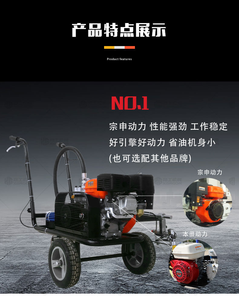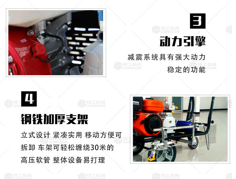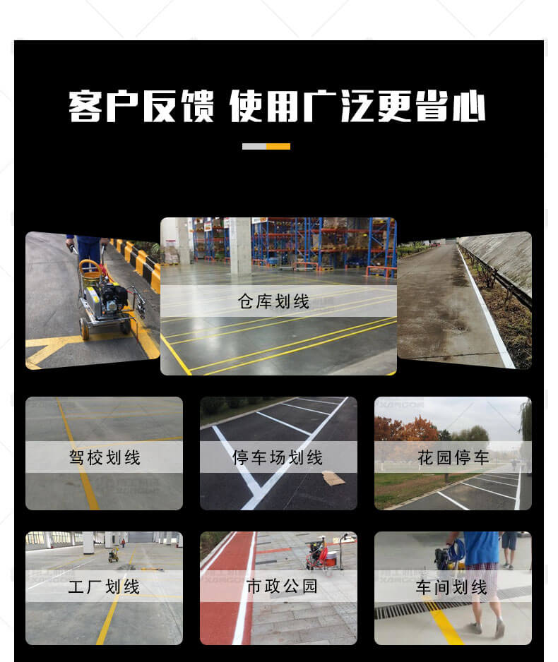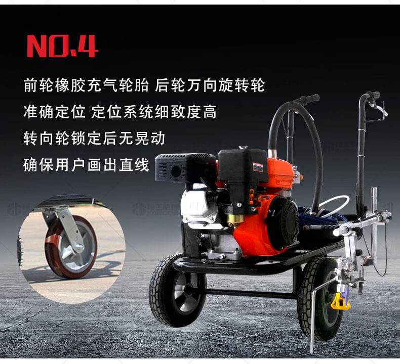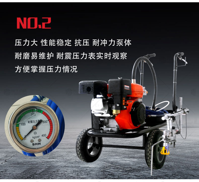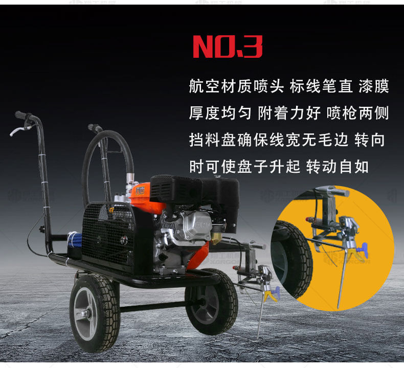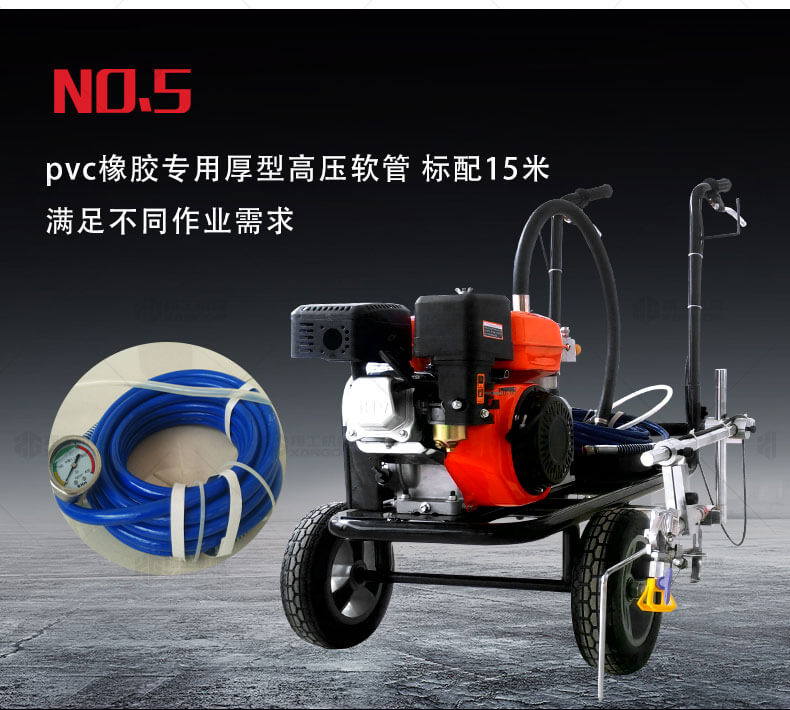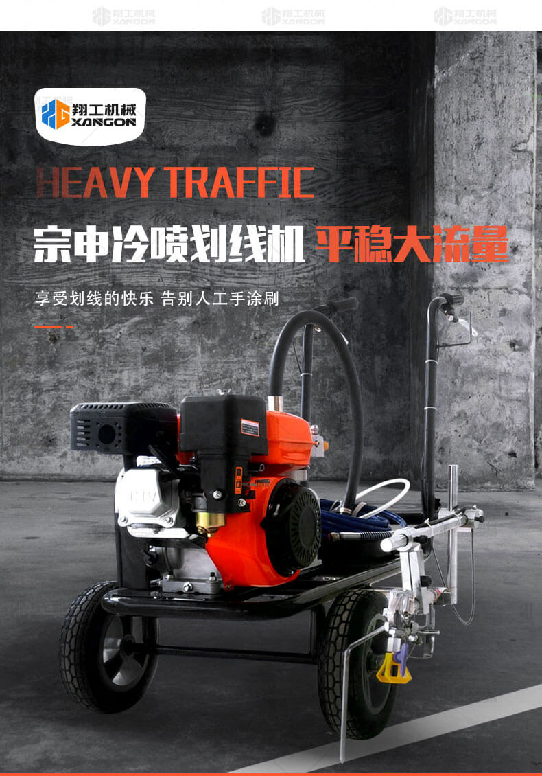 冷噴劃線機(jī)用汽油機(jī)帶動高壓泵的無氣噴涂技術(shù)運用于運動場地劃線車,噴出的線型清晰、流暢、飽滿、均勻、工作效率高。