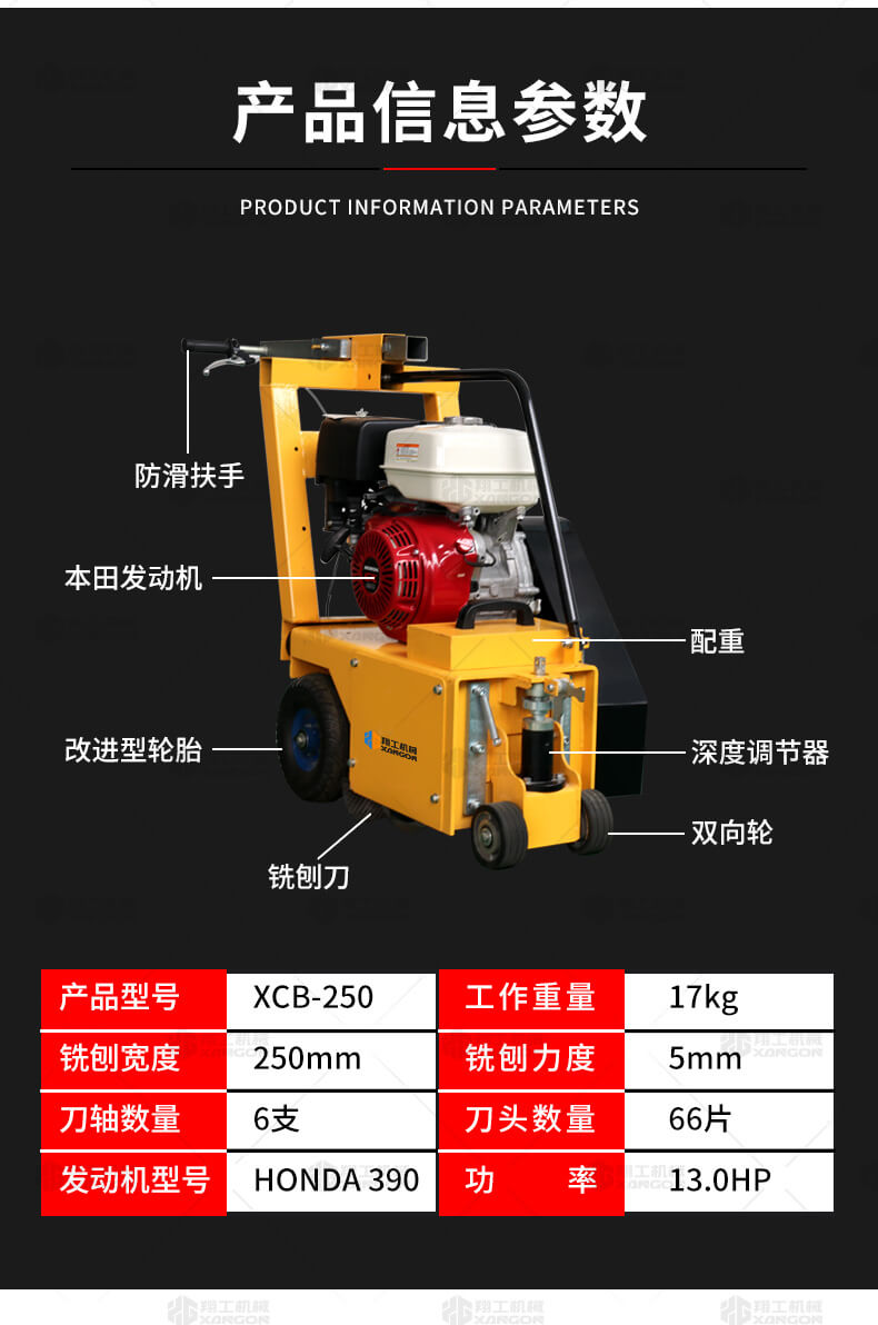 汽油小型銑刨機用于橋面鋪設(shè)瀝青或車間舊的混凝土地面重新攤鋪混凝土之前,清理水泥浮漿以及鏟平拉毛,也用于清理建筑施工中的堅硬灰渣。