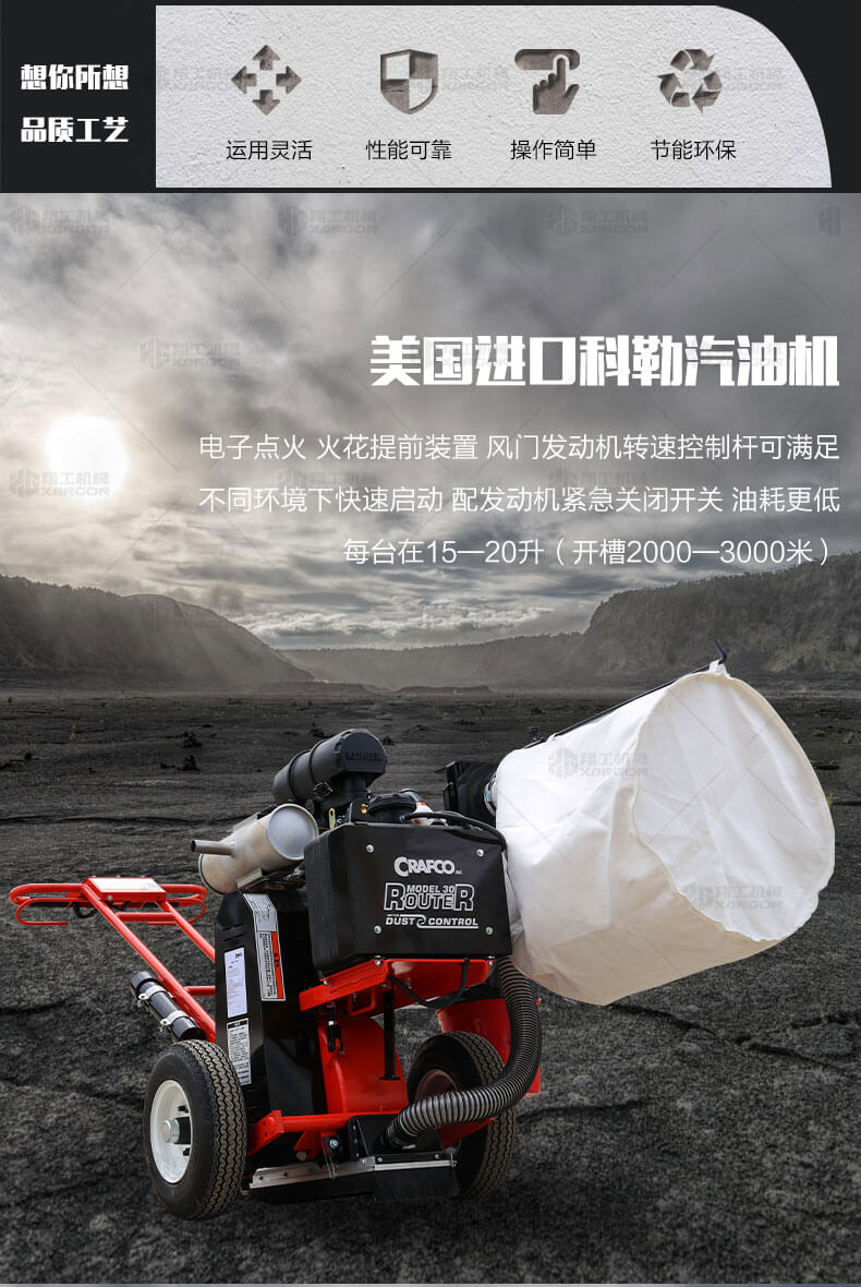 吸塵式路面開槽機(jī)是用于瀝青路面修補(bǔ)裂縫開槽的機(jī)械,它具有體積小,行進(jìn)靈活,工作可靠效率高的優(yōu)點(diǎn),是瀝青路面修補(bǔ)灌縫前對裂縫開槽的機(jī)械。