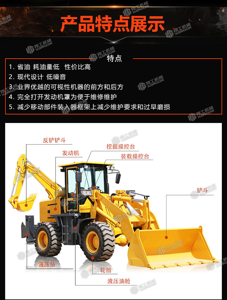挖掘裝載一體機俗稱“兩頭忙”。因為它具有獨特的構(gòu)造,前端是裝載裝置,后端為挖掘裝置。在工地內(nèi),您只需要轉(zhuǎn)動一下座椅,即可完成從裝載機到挖掘機操作手角色的轉(zhuǎn)變?!皟深^忙”屬于小型多功能工程機械的一種,一般在大工程完成后的小工程中使用。它可配多種工作裝置及輔具,進行挖掘、鏟裝、路面破碎、平整場地、開挖溝渠、鋪設(shè)管道等多種作業(yè)。