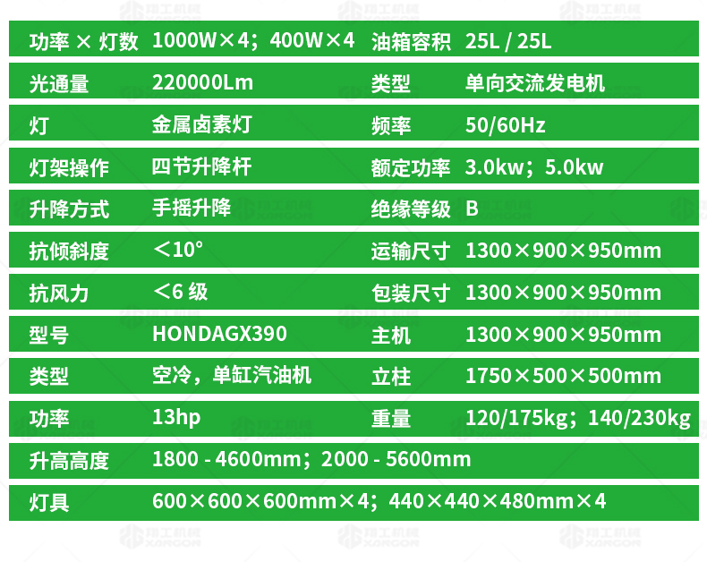 XZM-1000B工程照明車(綠色)
