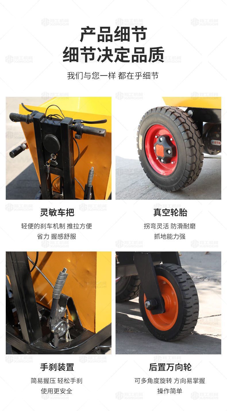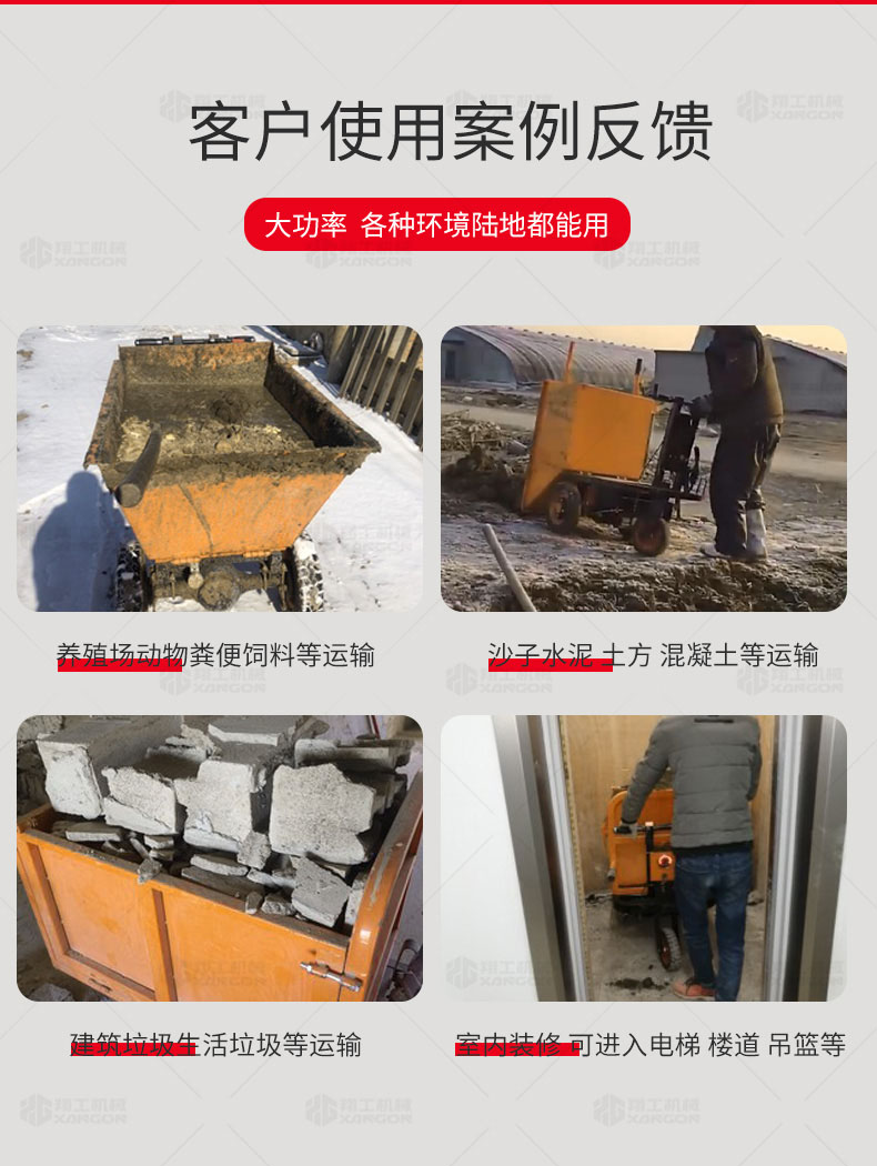 此款車適用于建筑工地、室內裝修、養(yǎng)殖場、工廠等場所,運輸沙子、水泥、土方、混凝土、建筑垃圾生活垃圾、養(yǎng)殖場動物糞便、飼料等,體積小操作簡單靈活,可原地360度轉圈,可進入樓層、樓道、電梯、吊籃等各種狹小空間作業(yè),是您必不可少的裝卸助手。