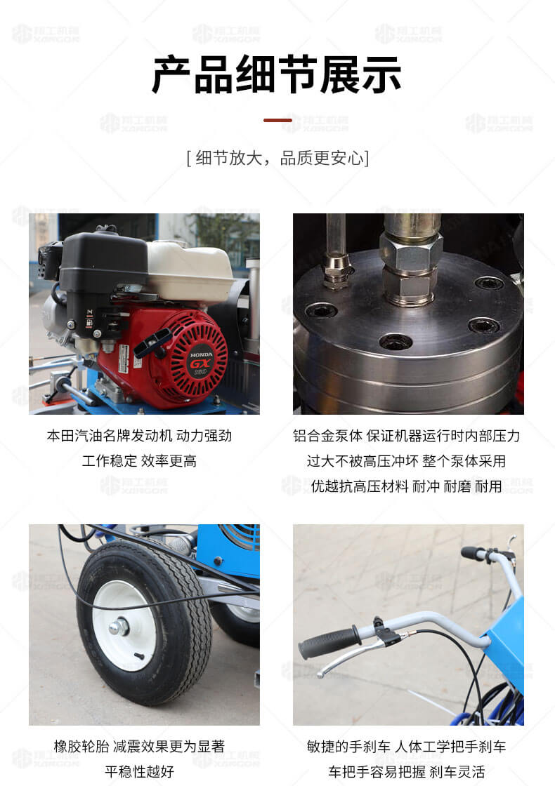 道路劃線機(jī)有冷噴式和熱熔式兩大類,冷噴式操作方便,施工快捷,可連續(xù)快速施工,越來越受到用戶青睞。熱熔式要帶上熱熔高溫爐等諸多輔助設(shè)施,施工時(shí)要間歇地從熱熔高溫爐取料,施工速度很慢,操作便捷性不夠且效率低,但一次成膜較厚。目前,比較常用的是冷噴手推式劃線機(jī),它可運(yùn)用于一般公路中小工程,運(yùn)用于廠區(qū)或地下室小工程劃線施工。