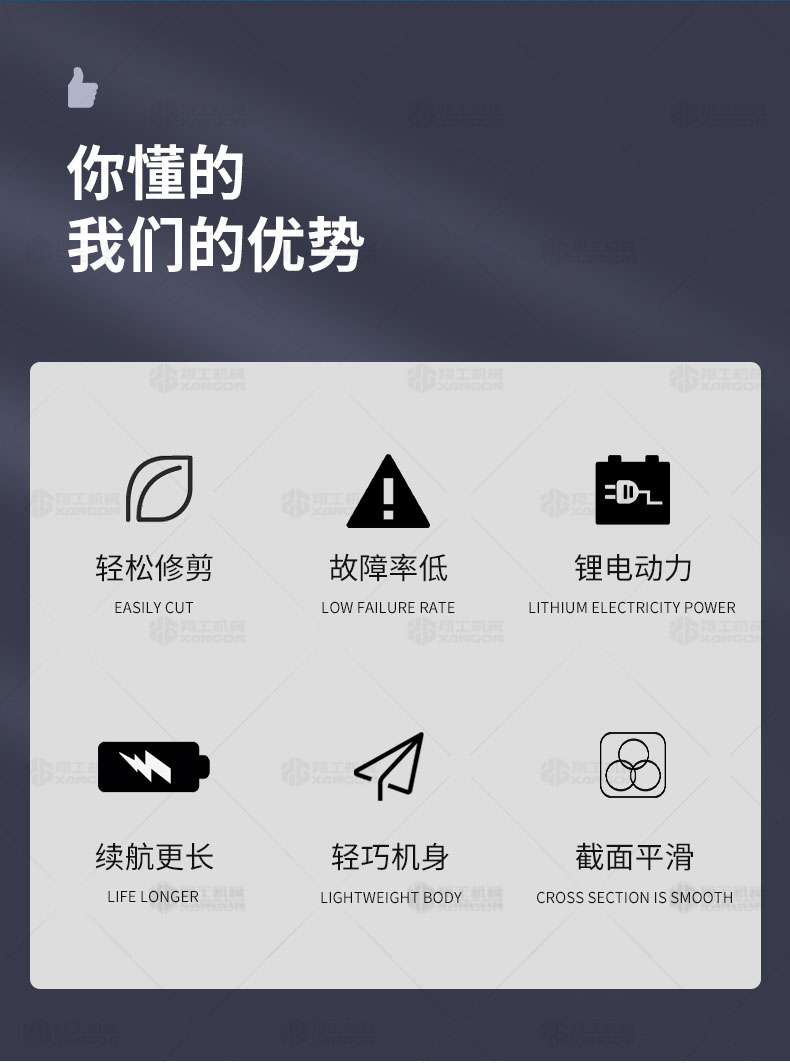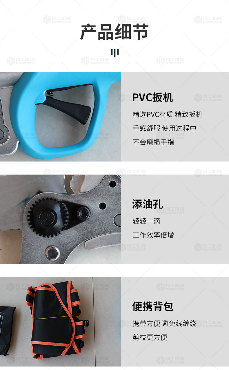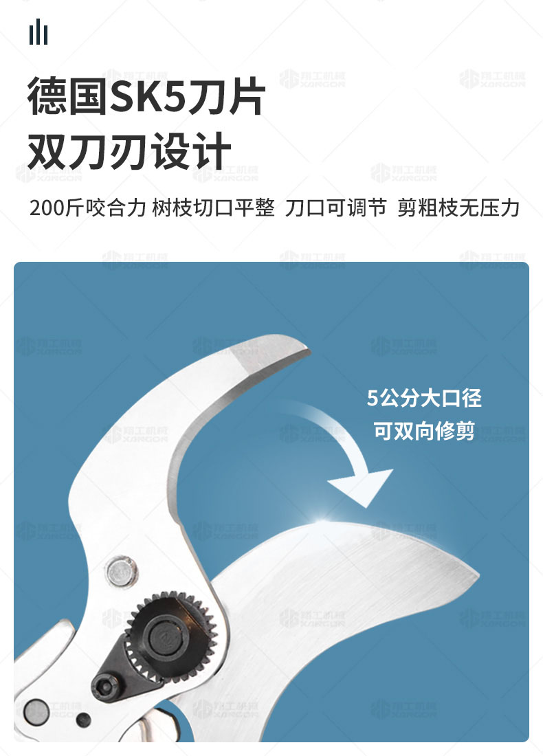修枝剪剪切范圍:直徑40MM硬枝(硬枝:冬青、黃楊、檜柏、刺柏、紫薇、茶樹(shù)等等)至50MM軟枝(軟枝:葡萄枝類(lèi))