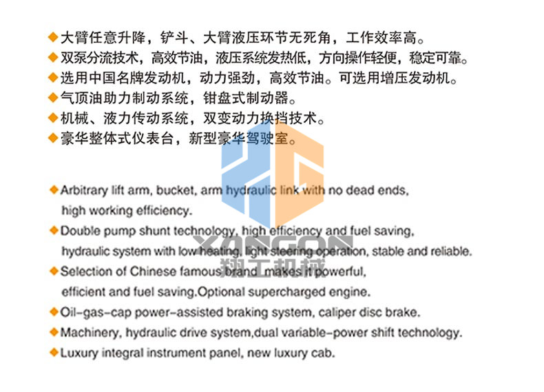 主要用于鏟裝土壤、砂石、石灰、煤炭等散狀物料,也可對礦石、硬土等作輕度鏟挖作業(yè)。換裝不同的輔助工作裝置還可進(jìn)行推土、起重和其他物料如木材的裝卸作業(yè)。在道路、特別是在高等級(jí)公路施工中,裝載機(jī)用于路基工程的填挖、瀝青混合料和水泥混凝土料場的集料與裝料等作業(yè)。