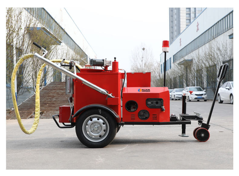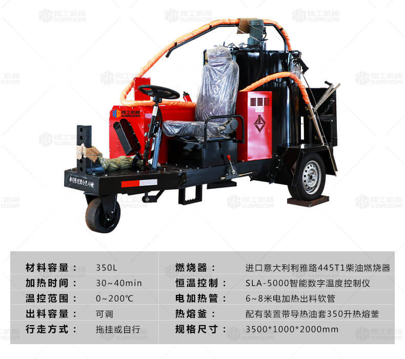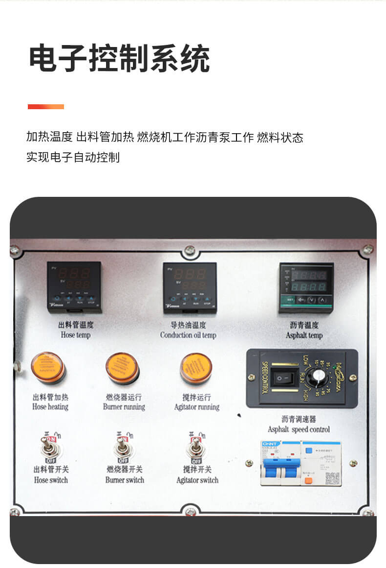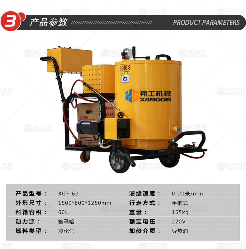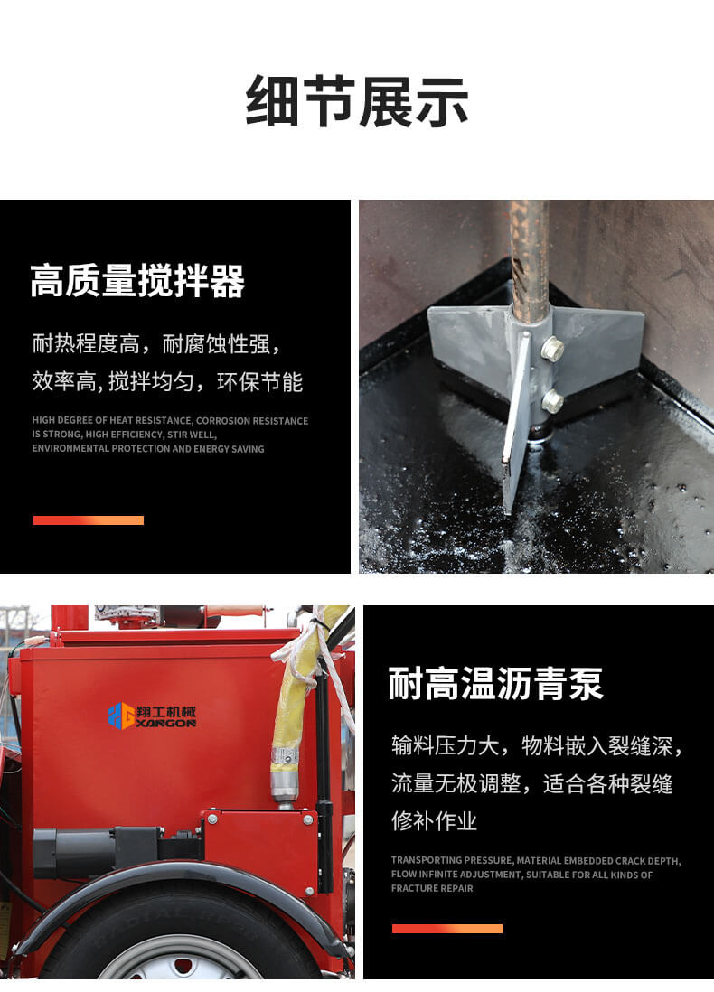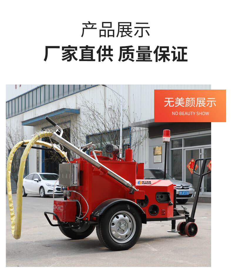 灌縫機主要有手推式和自行式手持灌縫管操作,采用進口柴油燃燒器加熱。在工作時首先在料箱內加入瀝青或灌縫膠,啟動發(fā)電機供電,依次間斷打開導熱油泵開關,燃燒器開關,出料管加熱開關;