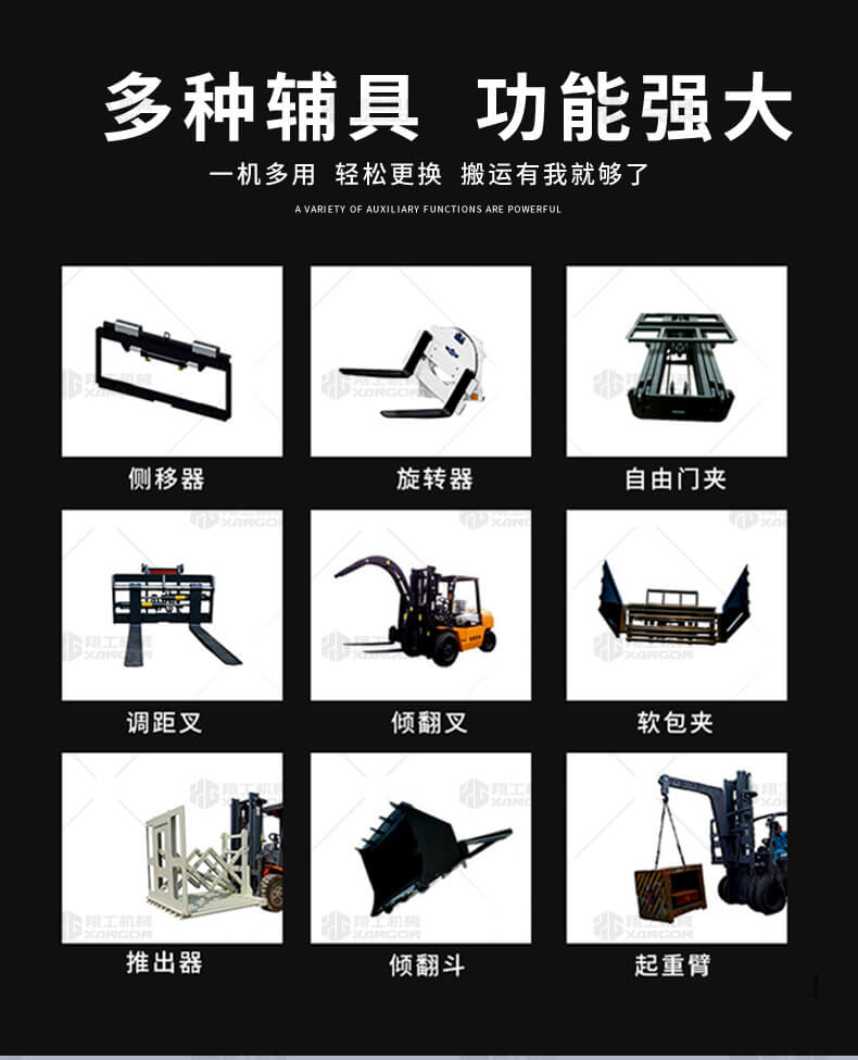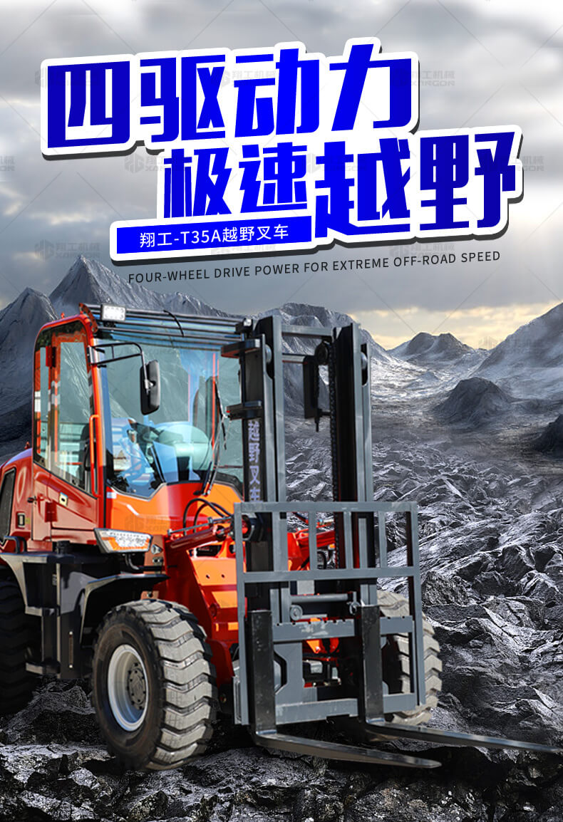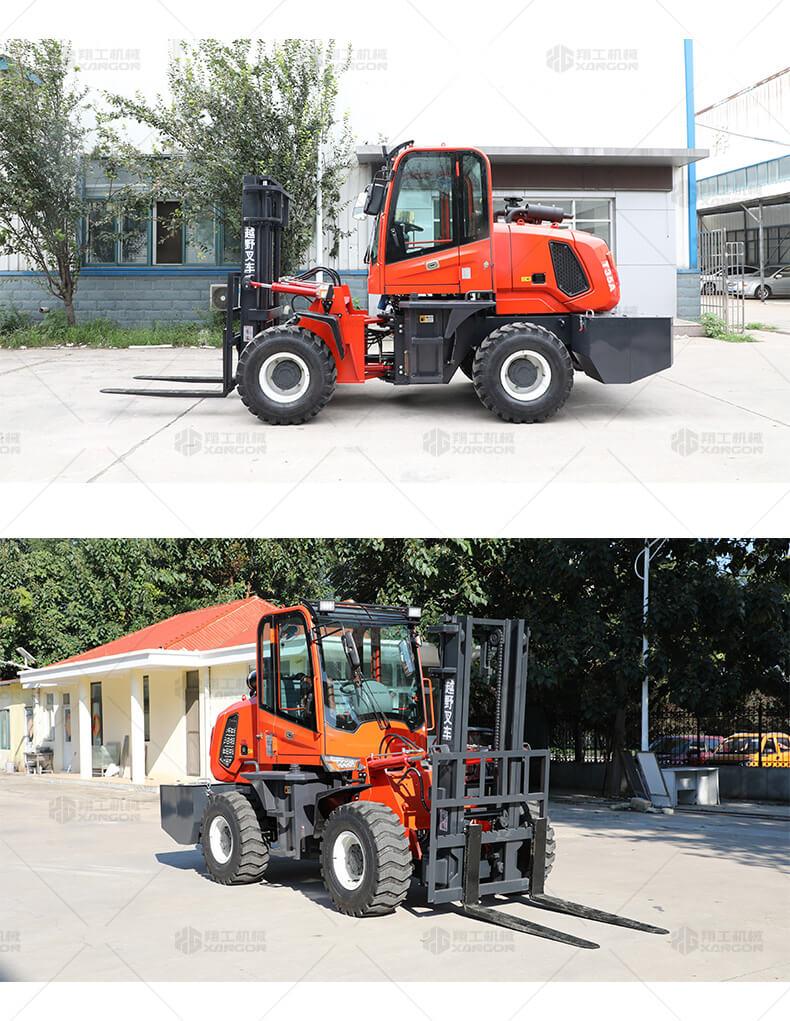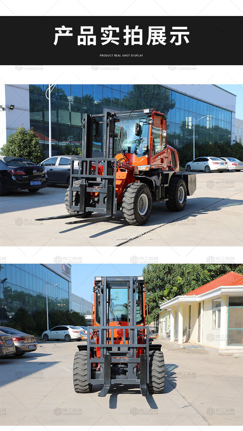 越野叉車可以在坡地和不平地面上進(jìn)行貨物裝、卸、堆垛及搬運(yùn)作業(yè),具有良好的機(jī)動(dòng)性、越野性可靠性。其功能多樣,可搭配側(cè)移器、調(diào)距叉、旋轉(zhuǎn)器、軟包夾、推出器、側(cè)翻叉、側(cè)翻斗、起重臂等工具完成不同的工作。