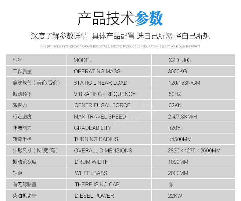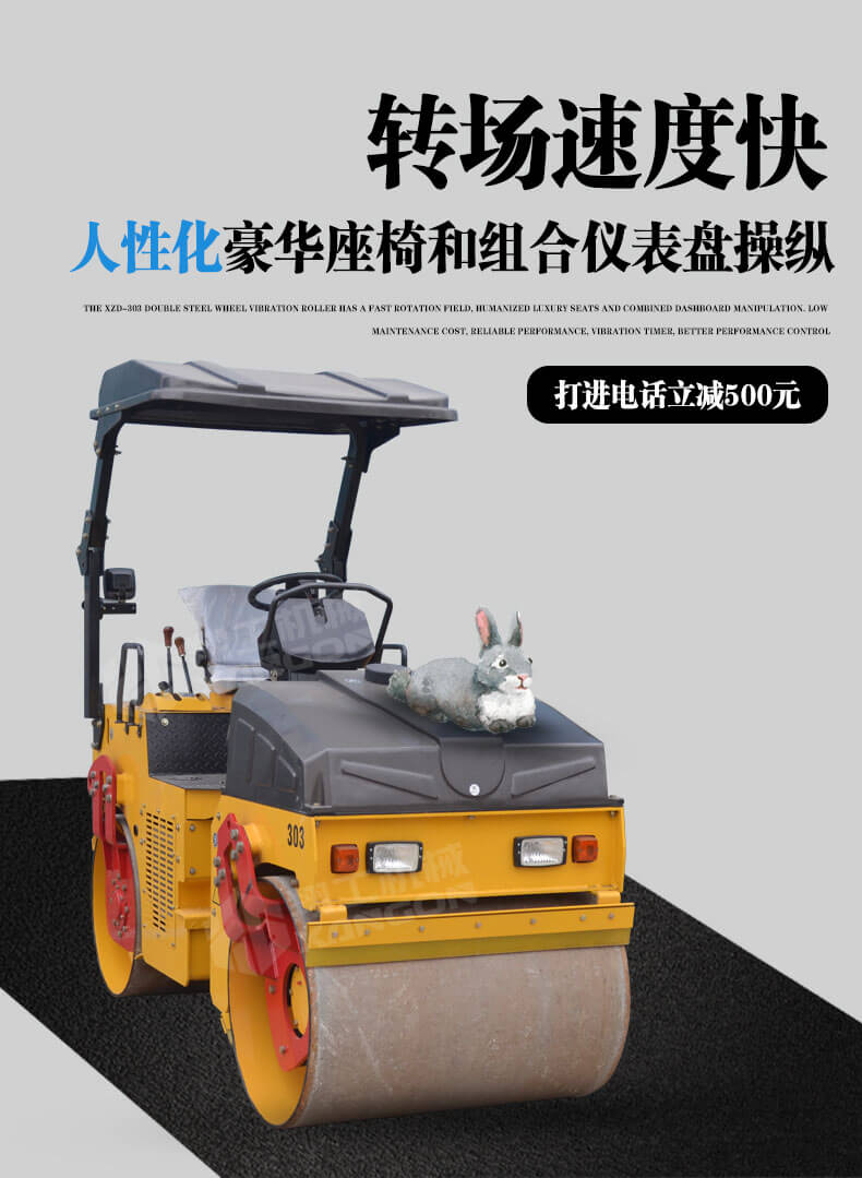1,XZD-303雙鋼輪振動(dòng)壓路機(jī)轉(zhuǎn)場(chǎng)速度快,人性化豪華座椅和組合儀表盤操縱。維修成本低,性能可靠,配置震動(dòng)計(jì)時(shí)器,對(duì)工作績(jī)效更好地控制;