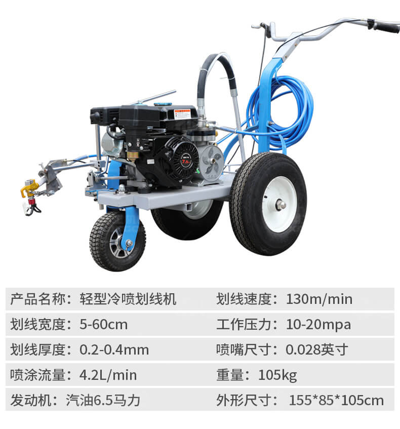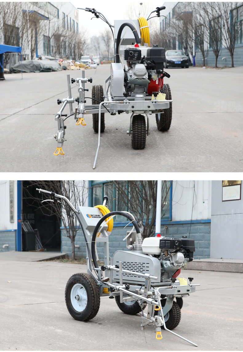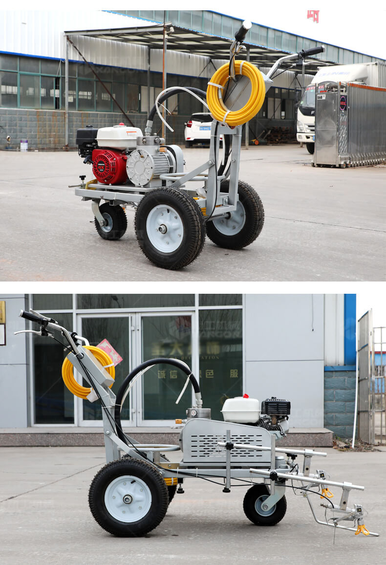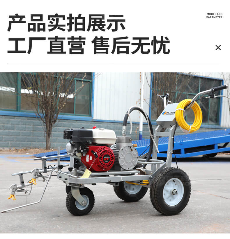 小型手推式道路劃線機(jī)是一種在道路、停車場、廣場和跑道等平整地面上劃出不同約束、指引和警示等規(guī)則限制標(biāo)志的路面施工機(jī)械。最常見的就是在馬路上劃斑馬線,在路上劃車庫線、停車線等等應(yīng)用于小型工程、短途施工,活動方便,靈活操作。