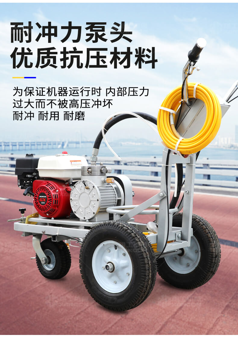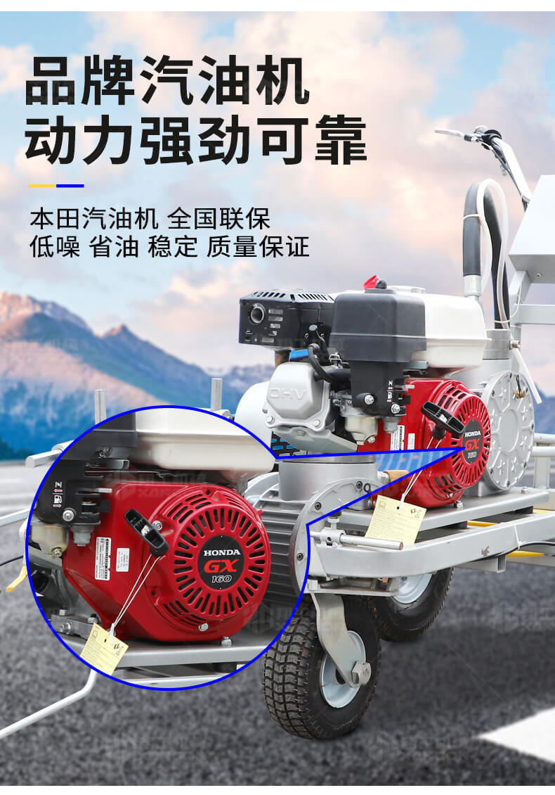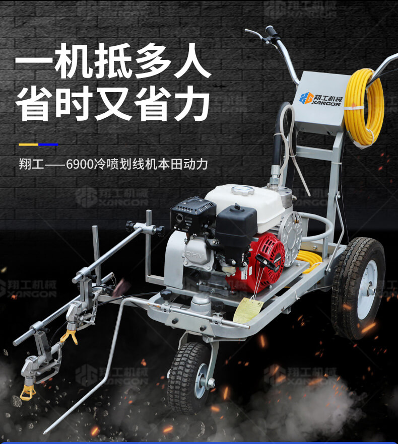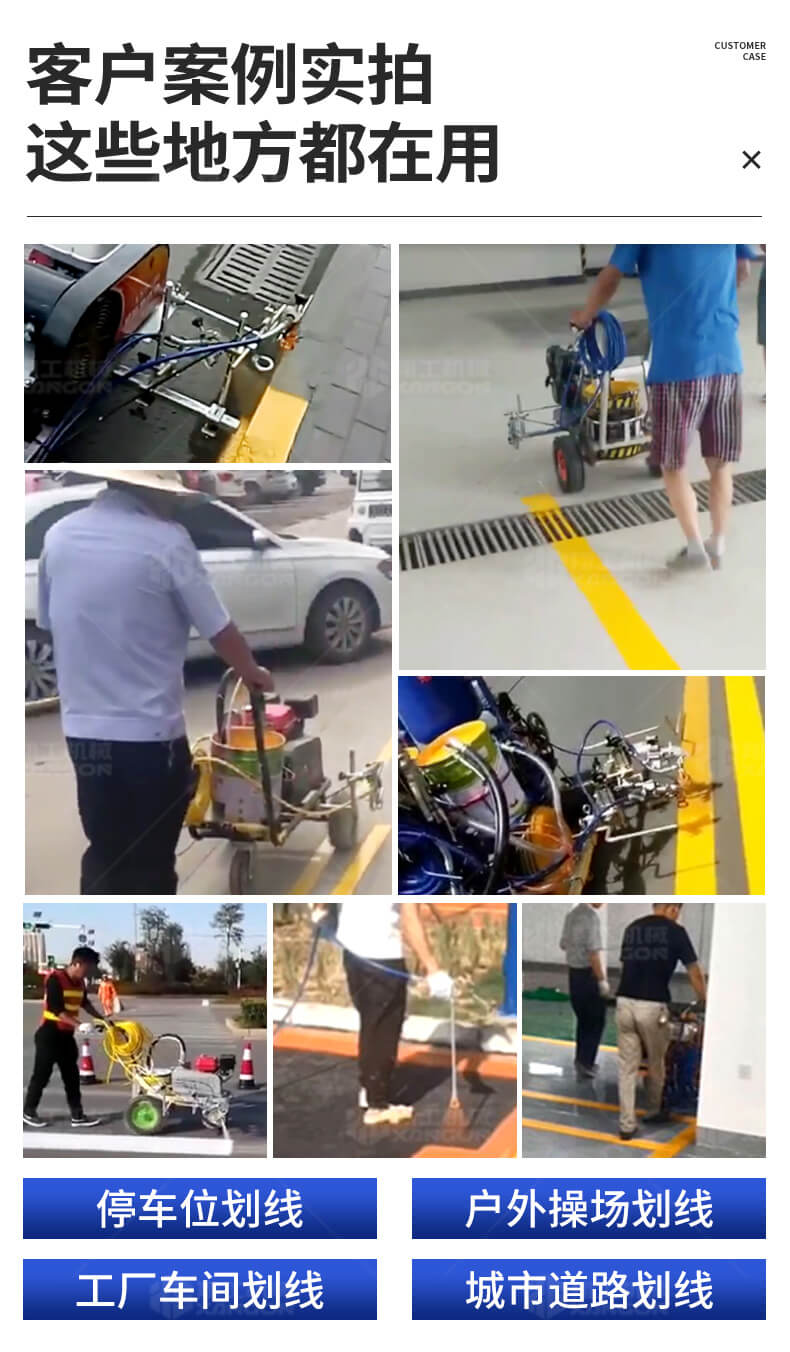 小型手推式道路劃線機(jī)是一種在道路、停車場、廣場和跑道等平整地面上劃出不同約束、指引和警示等規(guī)則限制標(biāo)志的路面施工機(jī)械。最常見的就是在馬路上劃斑馬線,在路上劃車庫線、停車線等等應(yīng)用于小型工程、短途施工,活動方便,靈活操作。