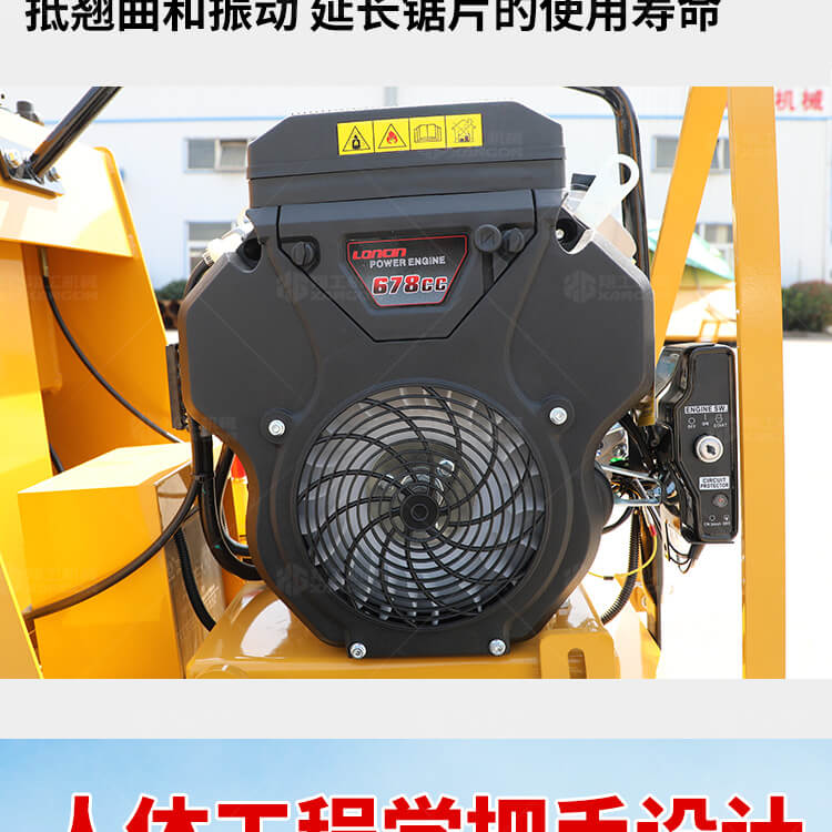大鋸片大直經(jīng)馬路切割機(jī)自帶水源,降塵降溫,刀片使用壽命長(zhǎng)。