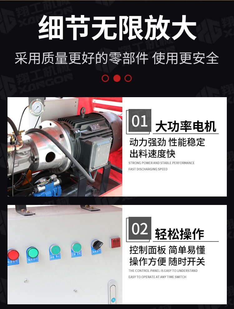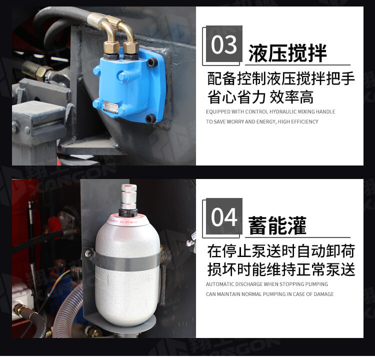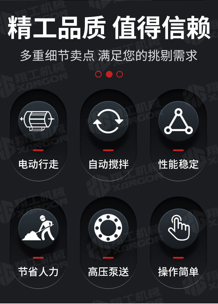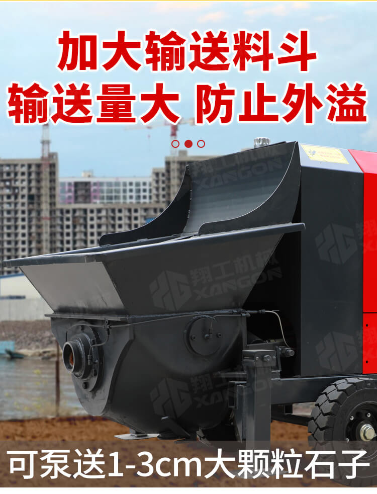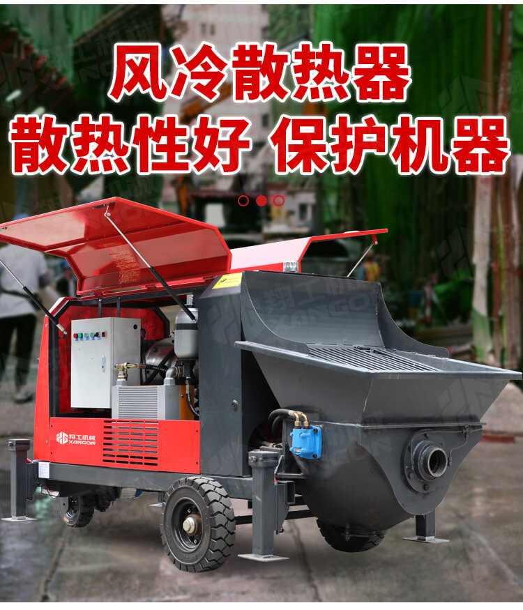 采用獨創(chuàng)的泵車尾輪驅(qū)動系統(tǒng)輕松解決移動時帶來的各種困難;采用雙排風(fēng)冷散熱系統(tǒng)散熱效果更好,液壓系統(tǒng)采用壓力更高,性能更穩(wěn)定的柱塞式自動變量主油泵,采用先進的三維立體壓模一體式自動攪拌料斗可輸送機制砂,高標號混凝土,有效緩解積料問題。