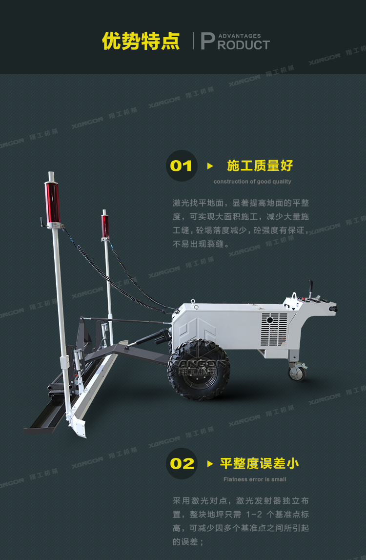 2,本產(chǎn)品的激光控制系統(tǒng)通過反饋調(diào)節(jié),實(shí)時監(jiān)控地坪的標(biāo)高,確保地坪的水平平整度和保證地坪的密實(shí)均勻;
