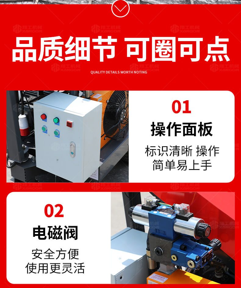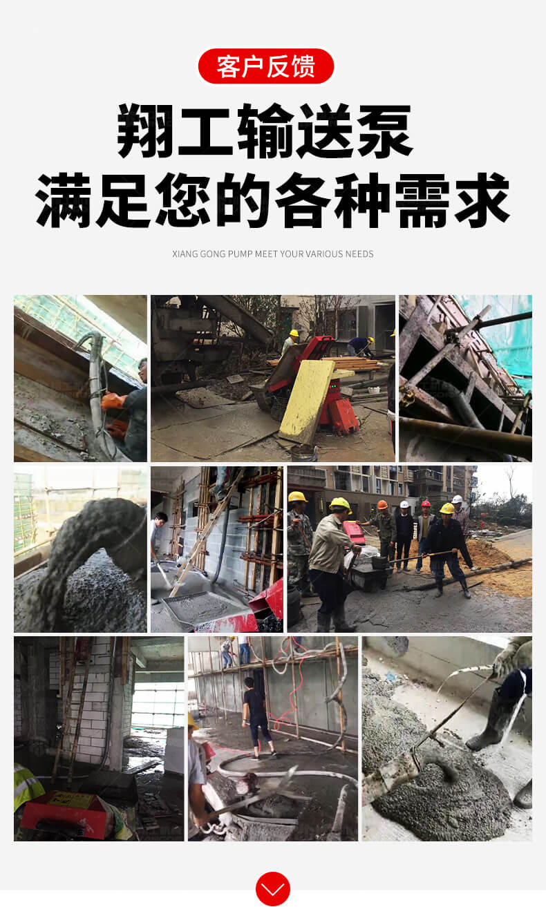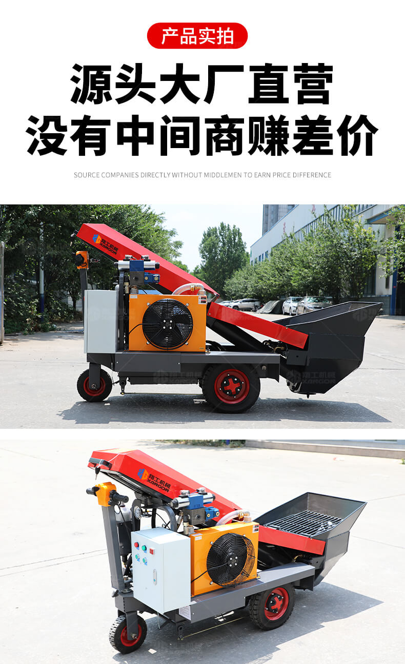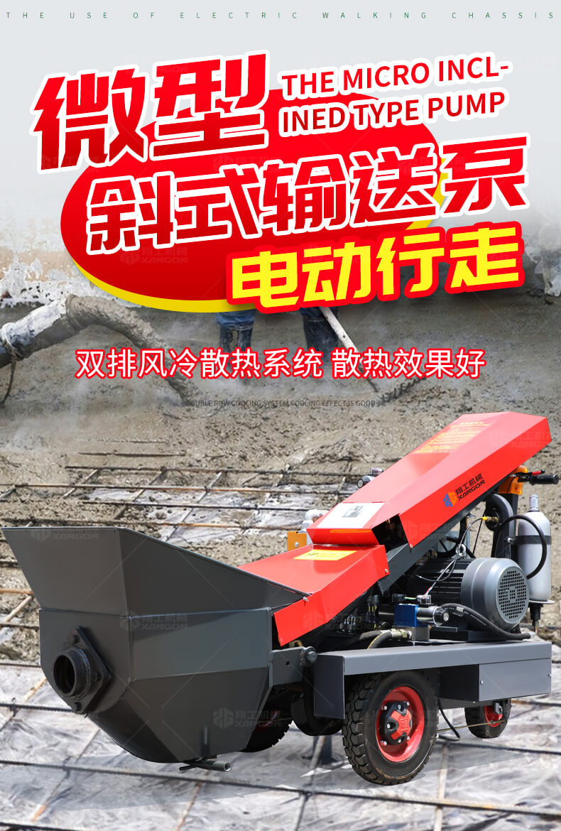 采用電動行走底盤,斜體式布局升降料斗,采用雙排風冷散熱系統(tǒng)散熱效果更好,液壓系統(tǒng)采用國內(nèi)知名廠商葉片泵,故障率低,壽命更長,性能更穩(wěn)定,超長行程料缸大大提高了輸送效率。