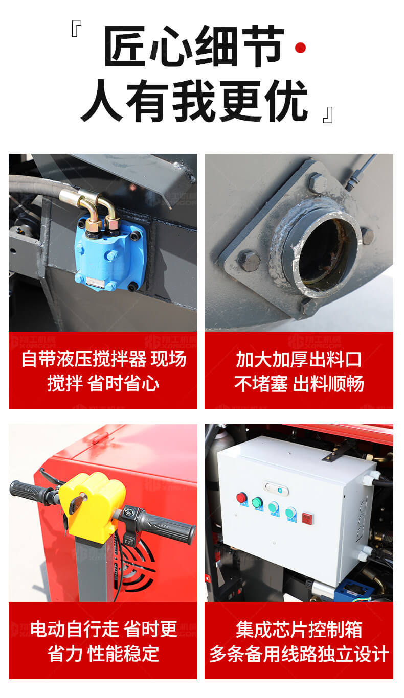 本產(chǎn)品為電動行走臥式造型混凝土輸送泵,料斗帶攪拌功能,可泵送機(jī)制砂;風(fēng)冷散熱,散熱效果好;集成芯片控制箱,多條備用線路獨立設(shè)計,不用擔(dān)心控制系統(tǒng)問題;操作部件采用24v 安全感應(yīng)電壓,安全可靠;S 彎采用兩個單向油缸,速度均勻。