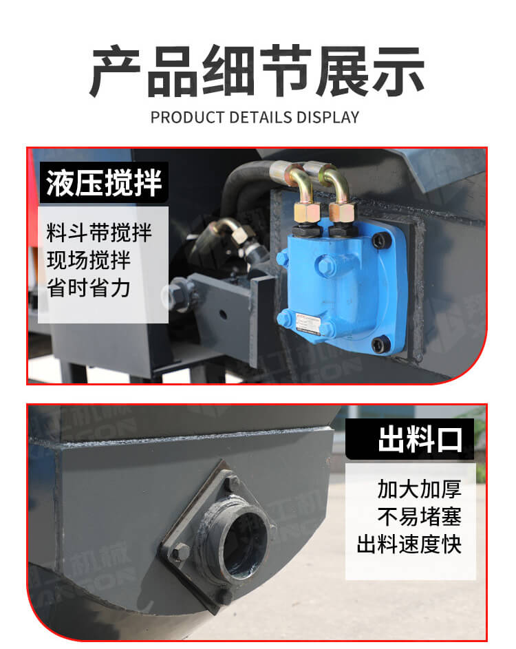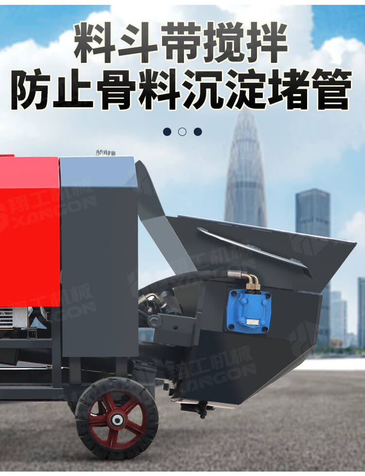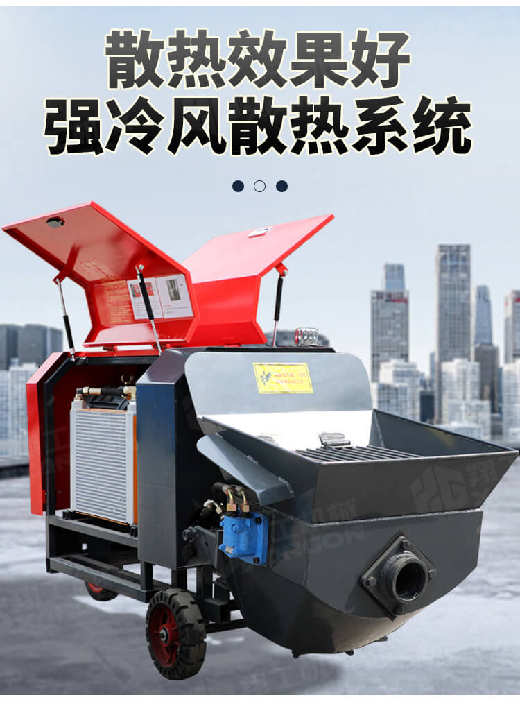 本產(chǎn)品為手推式行走臥式造型輸送泵,料斗帶攪拌功能,可泵送機(jī)制砂;風(fēng)冷散熱,散熱效果好;集成芯片控制箱,多條備用線路獨(dú)立設(shè)計(jì),不用擔(dān)心控制系統(tǒng)問題;操作部件采用24v 安全感應(yīng)電壓,安全可靠;S 彎采用兩個(gè)單向油缸,速度均勻。
