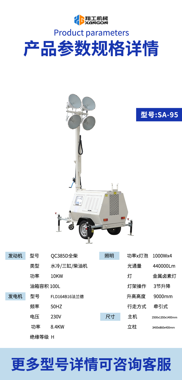 095移動照明燈車采用高功率LED光源,照明強度可達20000流明以上,覆蓋范圍廣,適用于夜間施工、應急搶險等場景。配備液壓升降系統(tǒng),燈架可升至6米,實現(xiàn)360°無死角照明。支持發(fā)電機/市電雙供電模式,配備大容量蓄電池,續(xù)航持久。全車防水防塵,移動靈活,是高效可靠的專業(yè)照明設備。