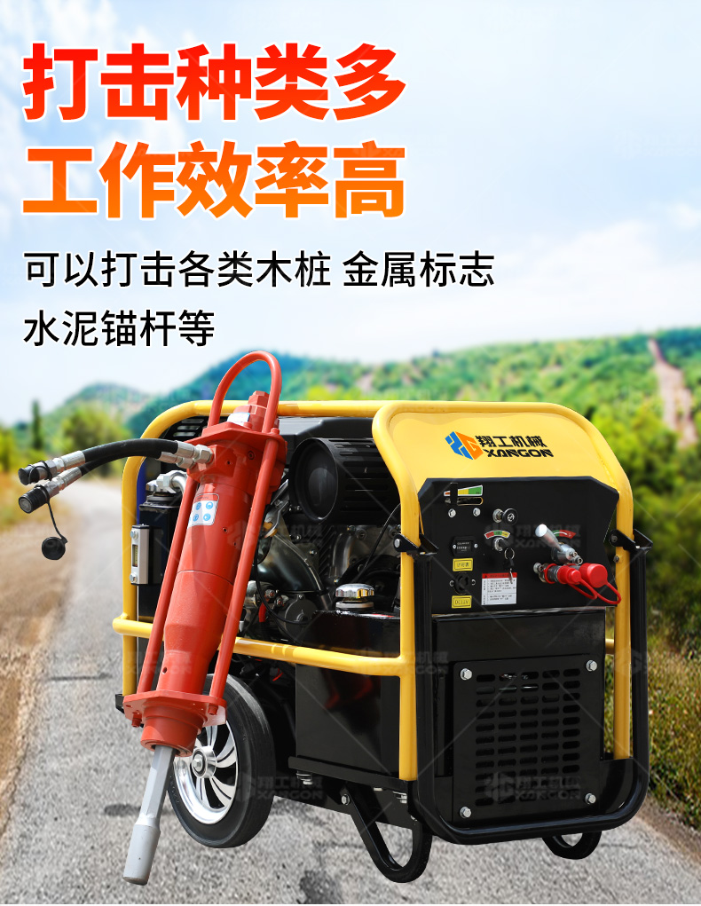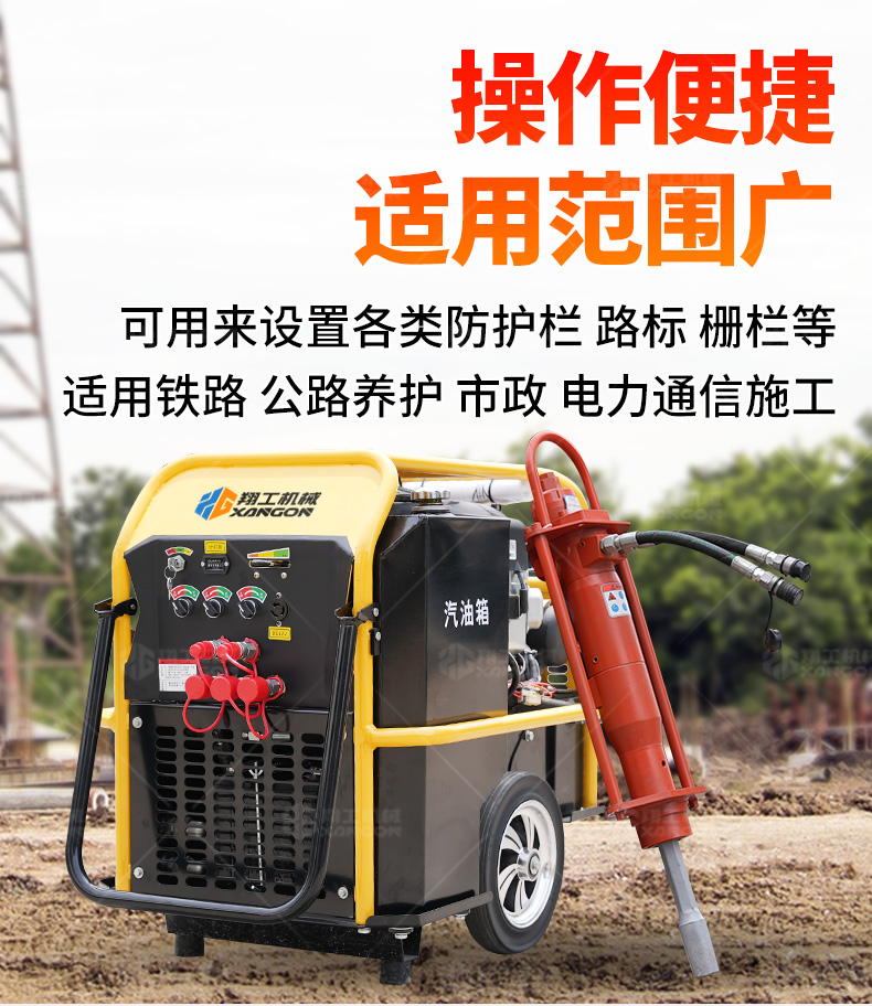手持液壓打樁機(jī)+液壓動(dòng)力站——高效靈活的打樁解決方案。采用液壓驅(qū)動(dòng),沖擊力強(qiáng)、振動(dòng)小,適用于建筑地基、圍欄安裝、園林工程等場(chǎng)景。搭配液壓動(dòng)力站,動(dòng)力強(qiáng)勁,操作便捷,可長(zhǎng)時(shí)間連續(xù)作業(yè)。體積小、重量輕,適合狹小空間施工,是工程打樁的理想工具。
