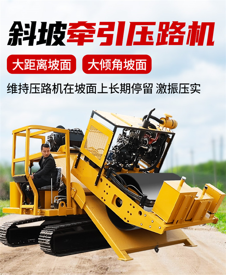 帶絞車斜坡壓路機(jī)是由壓路機(jī)和牽引絞車共同組成的協(xié)同工作的壓路機(jī),使用于大距離,大傾角的坡面工作。