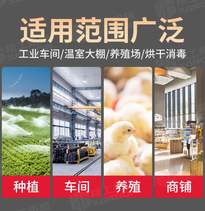 溫室加熱、育雛養(yǎng)殖、畜牧供暖、菌棚保溫、木材解凍、大棚種植保溫等 ?