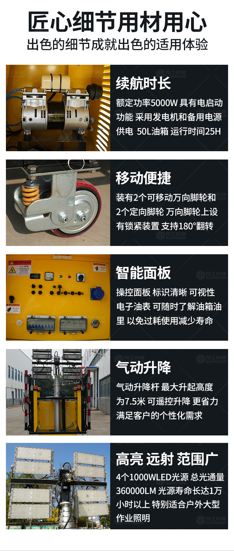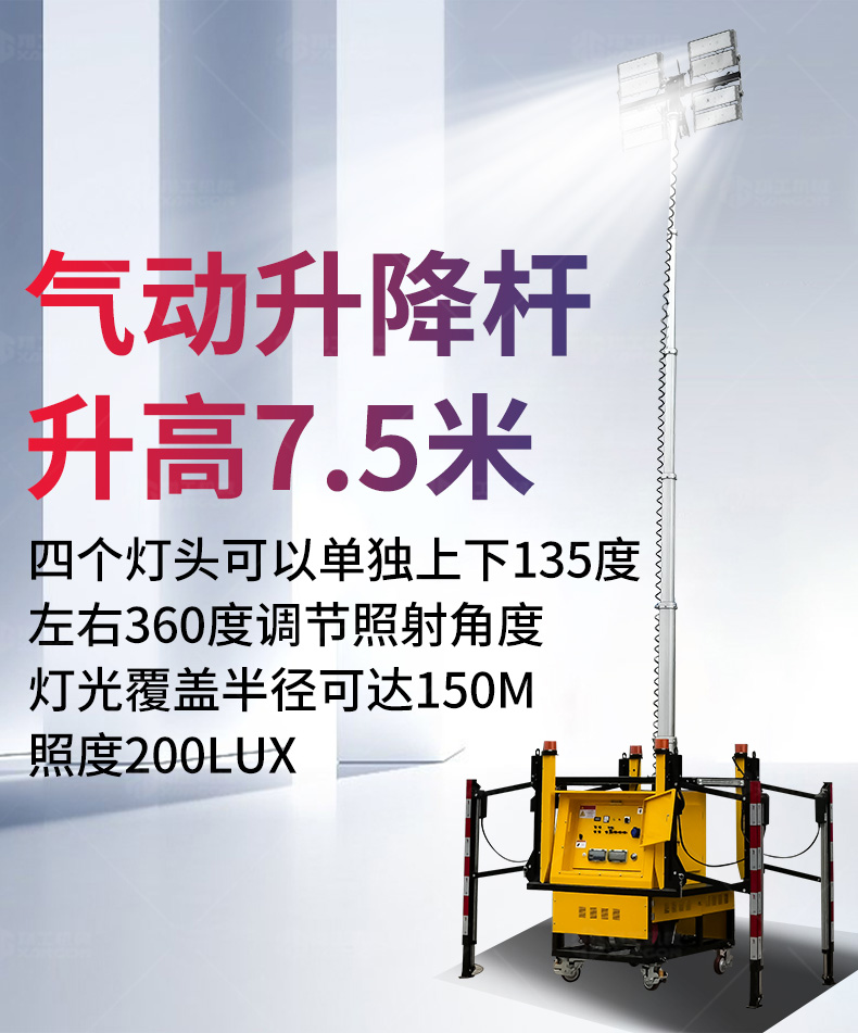 自卸式移動照明車集照明、自卸功能于一體,采用高效LED光源,照明范圍廣,亮度可調(diào)。配備液壓自卸系統(tǒng),可快速卸貨或調(diào)整設備高度,適用于工地搶險、夜間作業(yè)等場景。移動靈活,堅固耐用,支持市電/發(fā)電機雙模式供電,適應惡劣環(huán)境。是工程應急、物流裝卸等多功能照明解決方案。