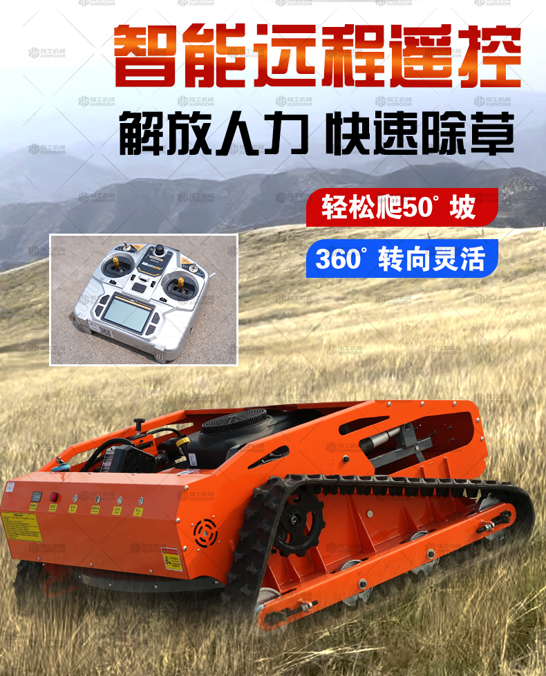遙控割草機是一種通過無線遙控操作的現(xiàn)代化果園除草設備,結合了傳統(tǒng)割草機的功能與智能操控技術,為用戶提供更高效、靈活的園林養(yǎng)護體驗。