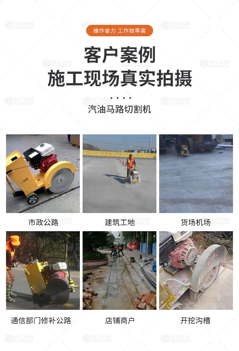 用于公路、市政、建筑、煤氣、通信部門(mén)修補(bǔ)公路或開(kāi)挖溝槽時(shí)進(jìn)行路面切割。相對(duì)于電動(dòng)或柴油動(dòng)力的路面切割機(jī),操作輕巧省力,運(yùn)輸方便,工作效率高。