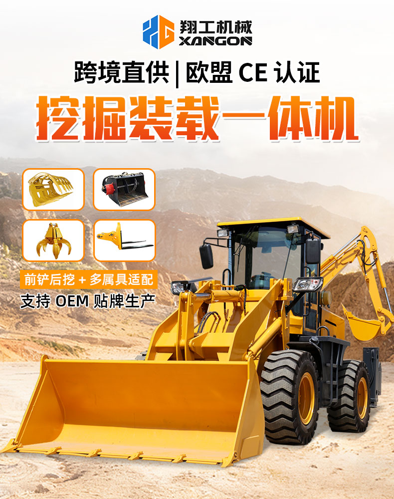 挖掘裝載機(jī),俗稱“兩頭忙”,是集成裝載和挖掘功能的工程機(jī)械。前方為裝載鏟斗,后方為挖掘裝置,可快速切換,實(shí)現(xiàn)鏟運(yùn)、挖掘、裝卸、平地等多種作業(yè)。結(jié)構(gòu)緊湊,機(jī)動靈活,廣泛用于市政建設(shè)、農(nóng)田水利、管線敷設(shè)等中小型工程現(xiàn)場,是高效多能的現(xiàn)代化施工設(shè)備。